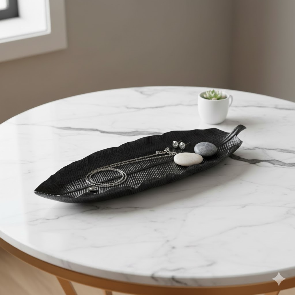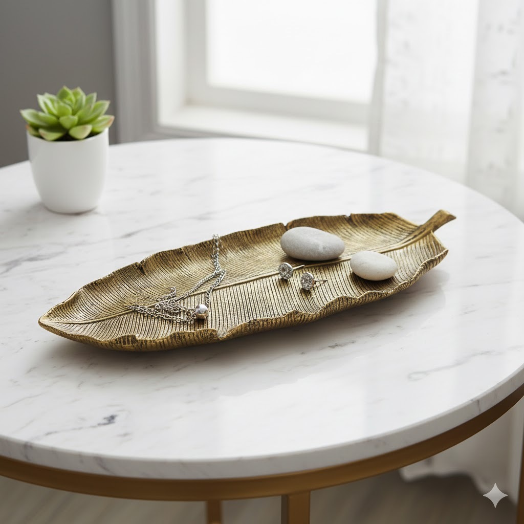 Centro de Mesa Bandeja Folha Rasa em Resina 44cm Decorativa Pronta Entrega
