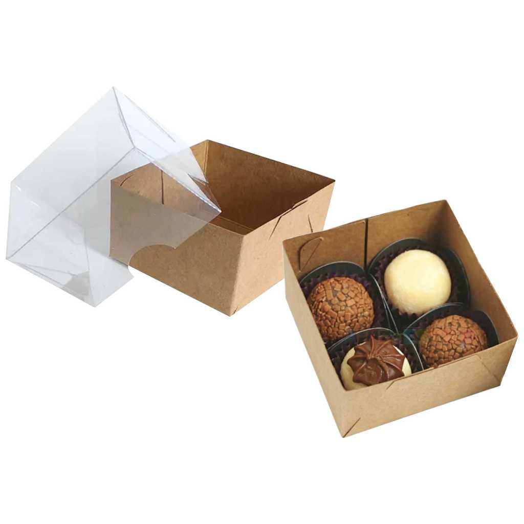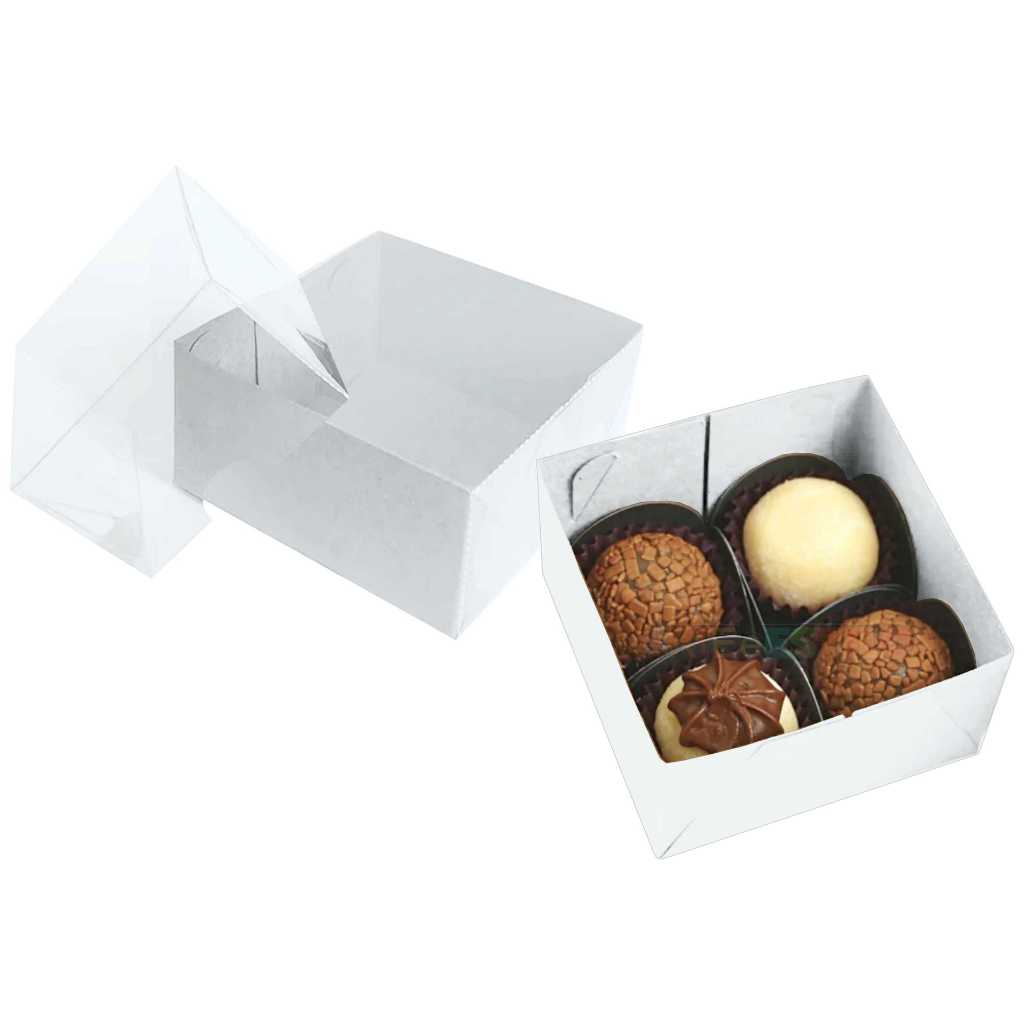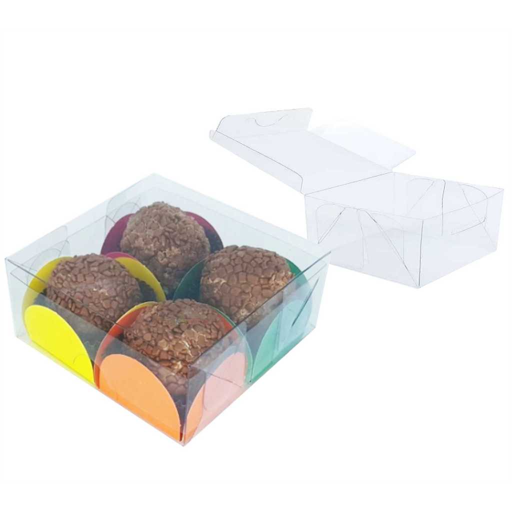 25 Caixas de Acetato com visor transparente 8x8x4 caixinha 4 docinhos brigadeiros gourmet 4x8x8