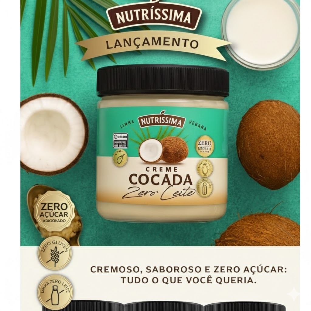Creme Cocada Sem Leite Vegano Zero Açucar, Zero lactose, Zero Glúten com castanha de caju 450g