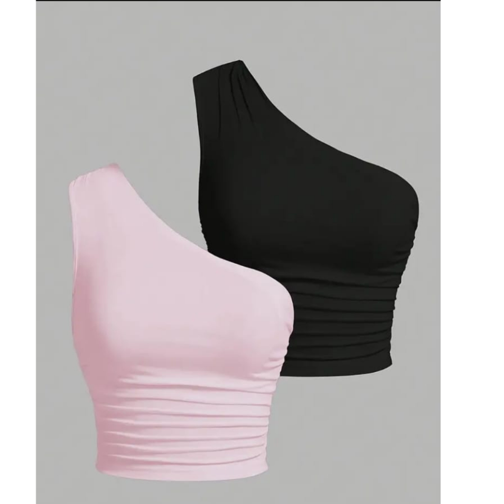 Kit 2 Cropped Feminino Mula Manca Uma Alça Forrado Suplex Casual