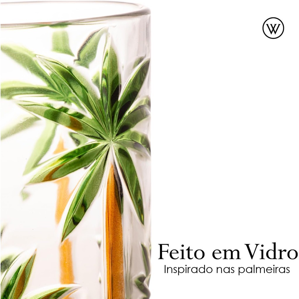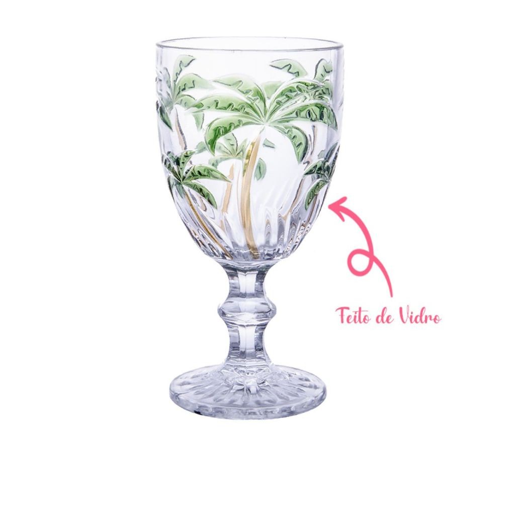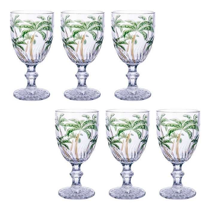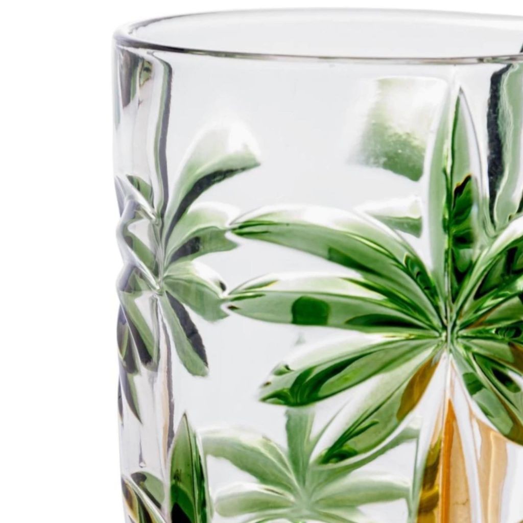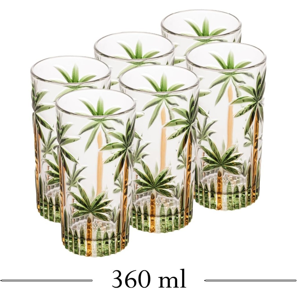 Jogo de Copos e taças Palm Tree Longos de Cristal 6 Peças Palmeira Verde Pintura à Mão 350 ml