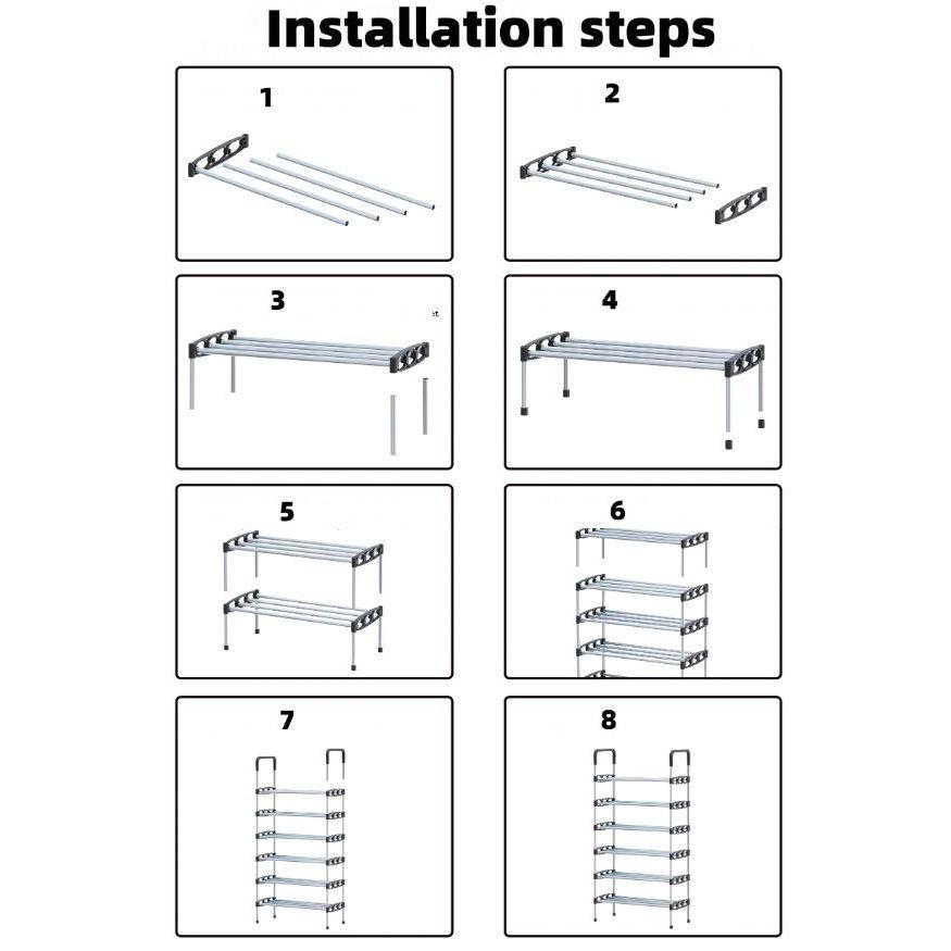 Sapateira Vertical 6-7-8 Prateleiras 18 Pares De Sapatos Calçados Aço Cromado Luxo Desmontável