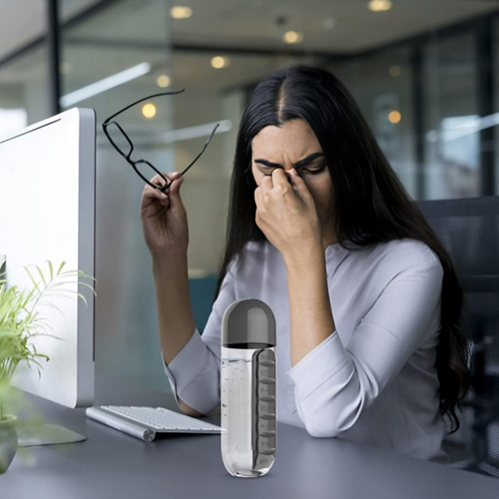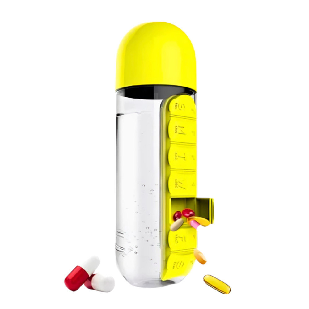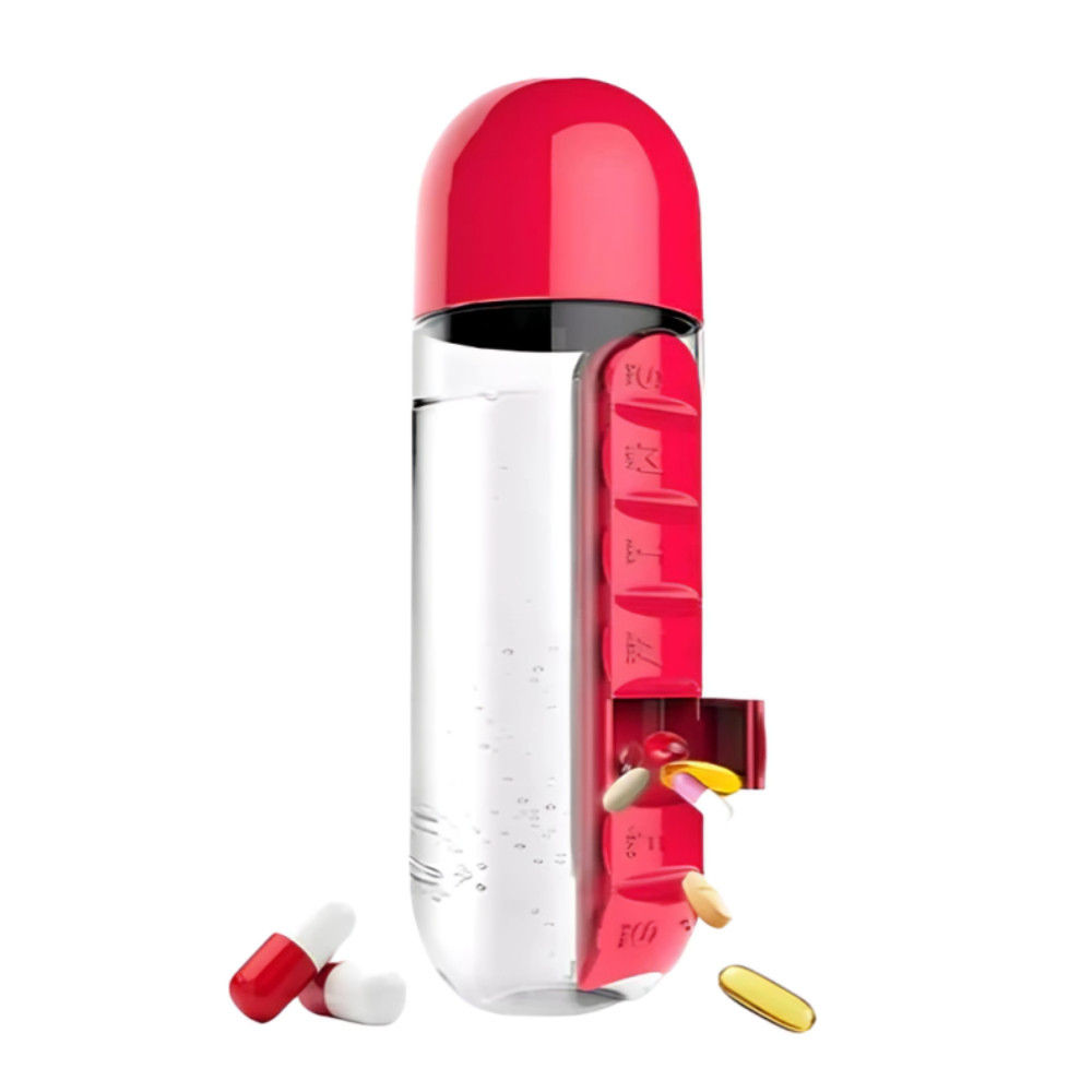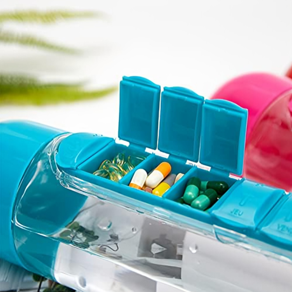 Garrafa para Academia Fitness de Água com Porta Comprimidos 600ML Lembrete de Comprimidos