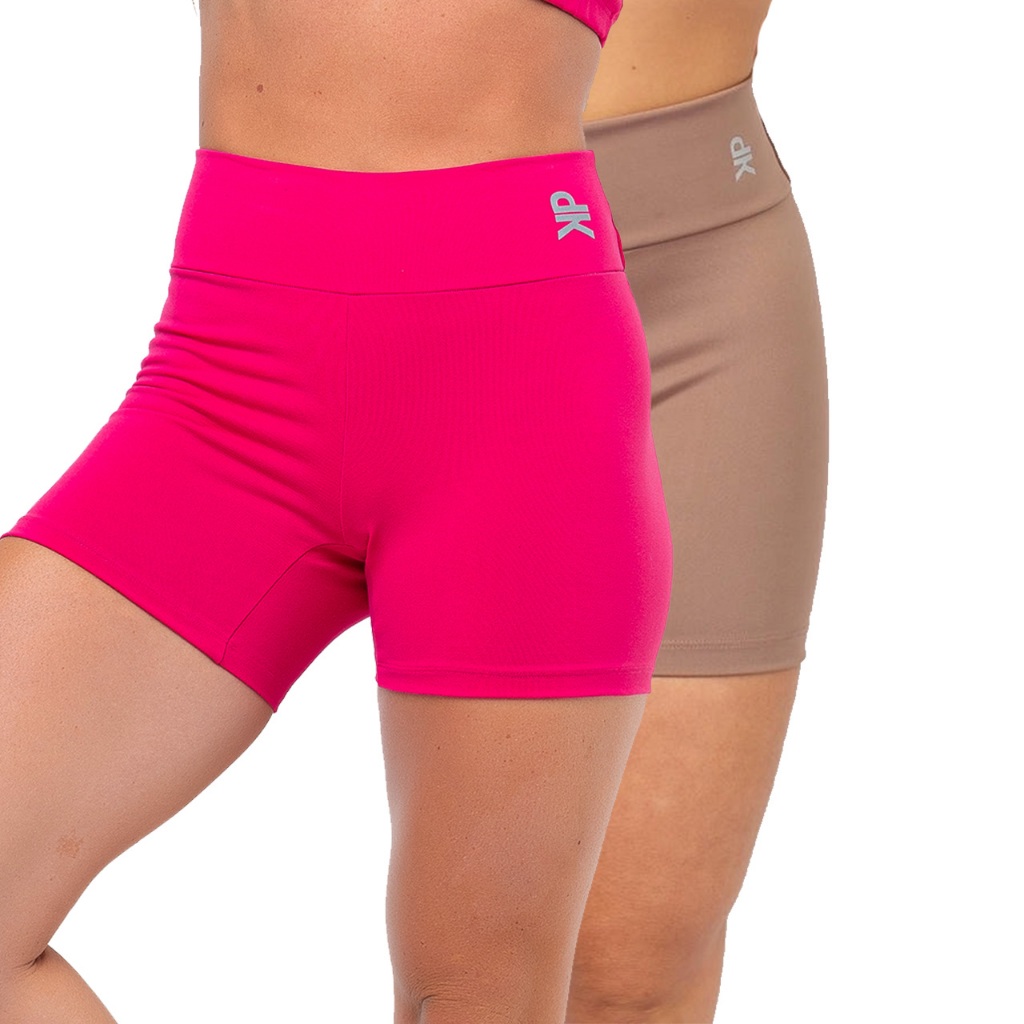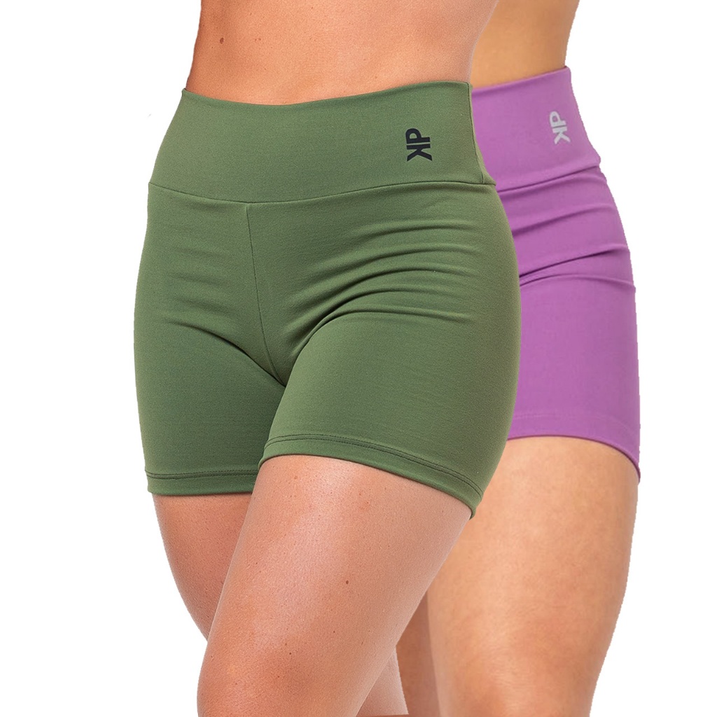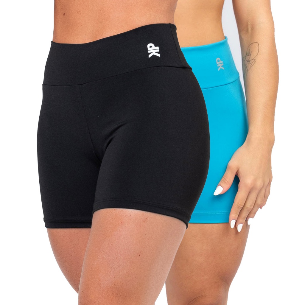 Kit 2 Short Fitness Feminino Cintura Alta Meia Coxa Academia Básico Colors Liso