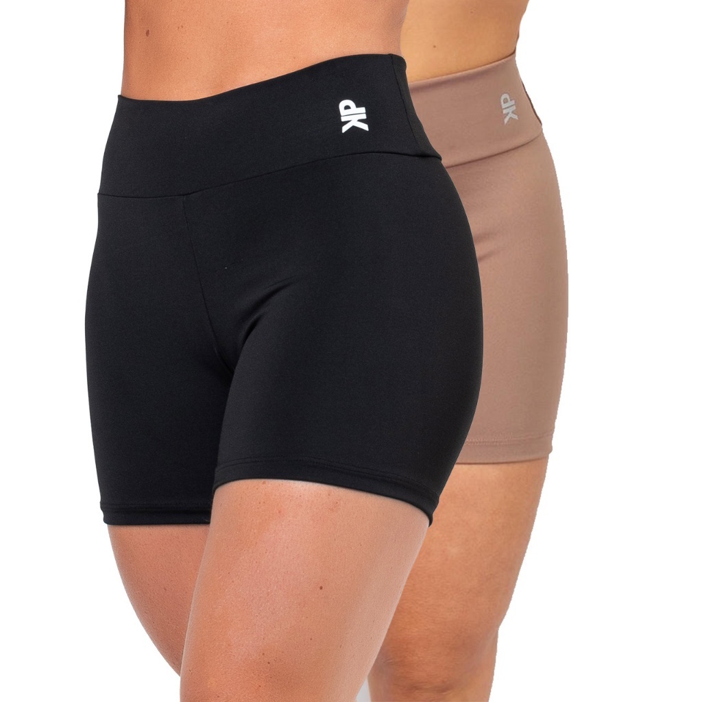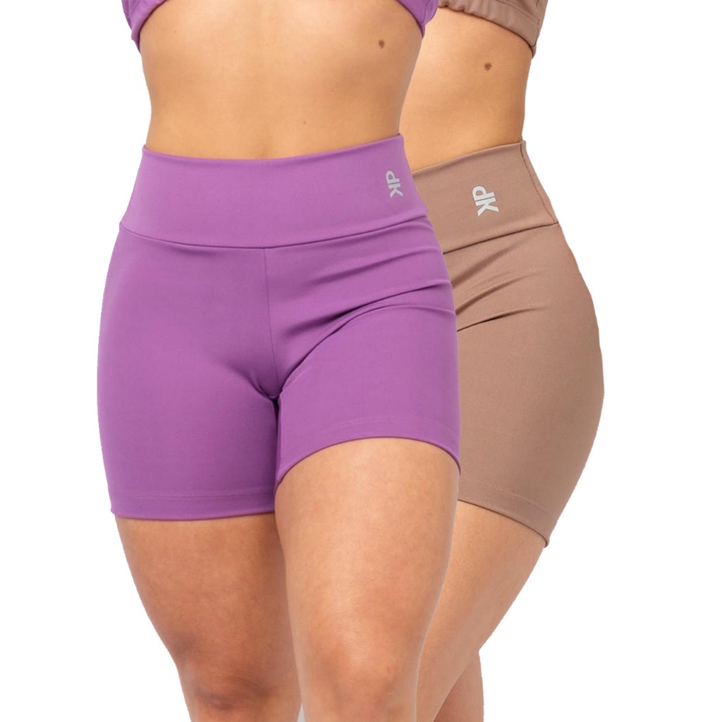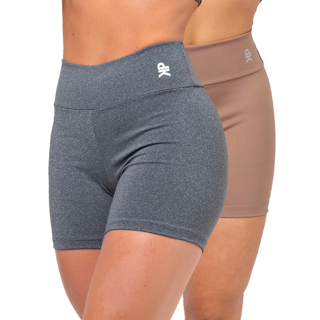 Kit 2 Short Fitness Feminino Cintura Alta Meia Coxa Academia Básico Colors Liso