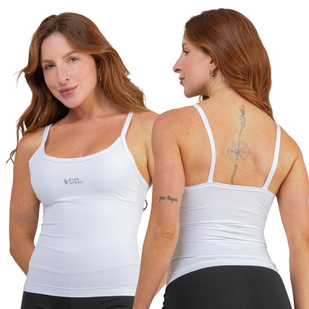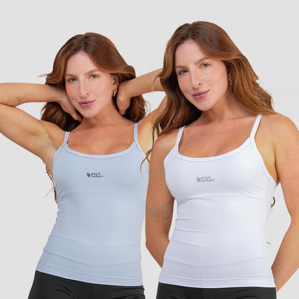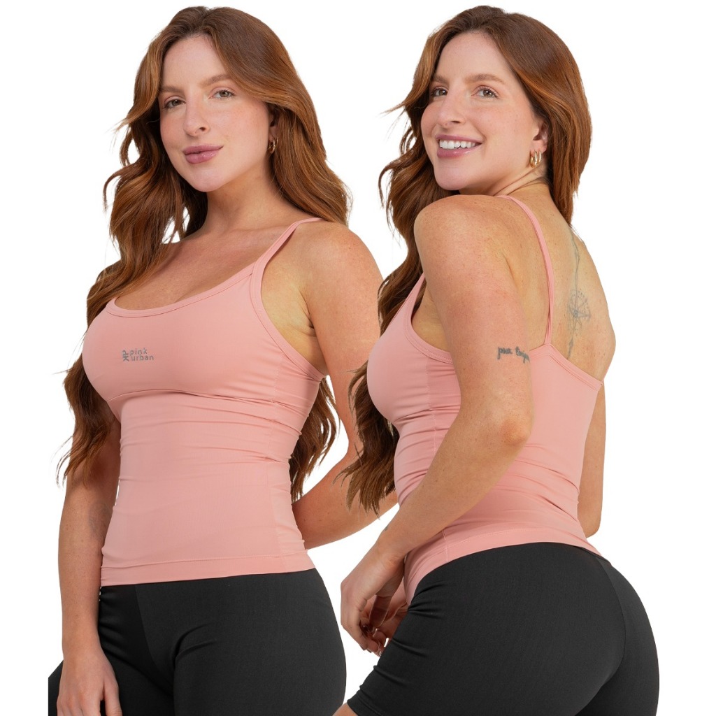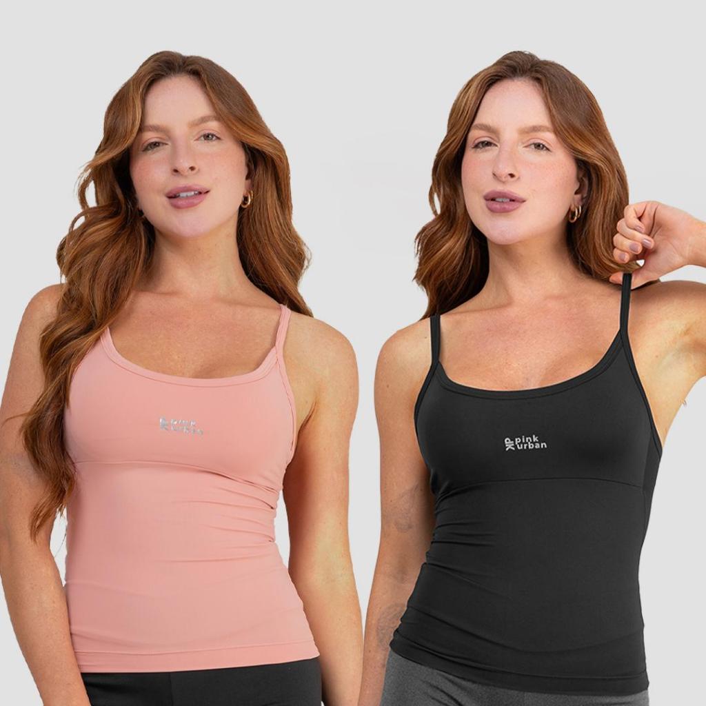 Kit 2 Regata Feminina Fitness Premium Alça Fina Poliamida Academia Forro Duplo Blusinha Verão