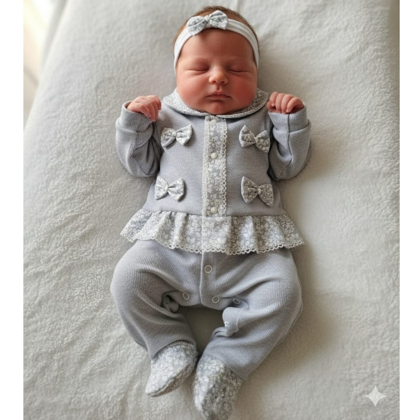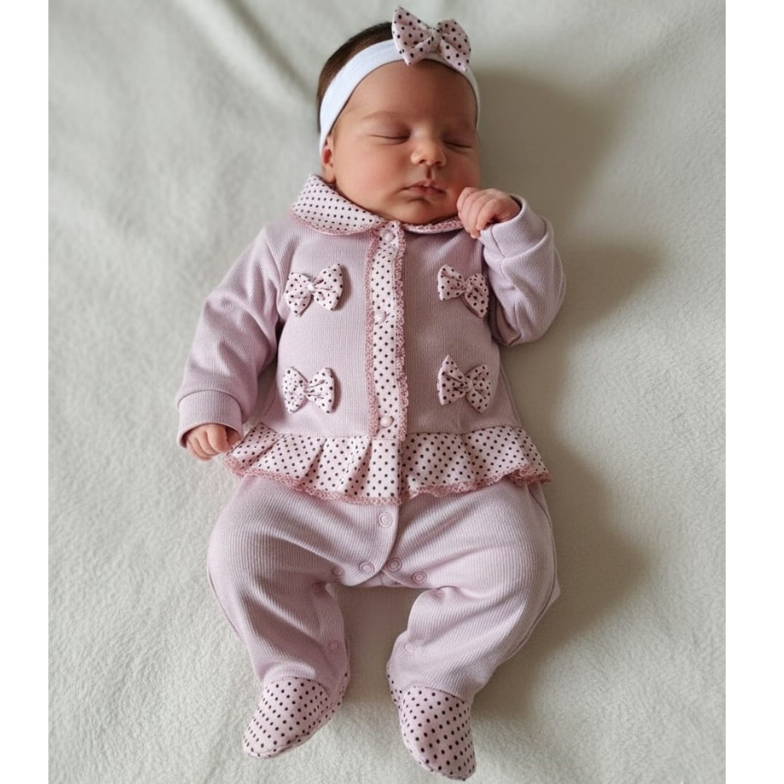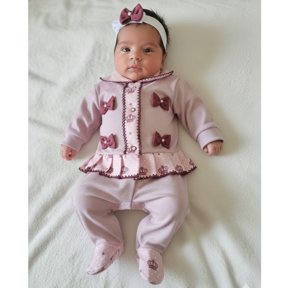 Macacão Para Menina Manga Longa Sintonia Mia Malha com Lacinhos P/M