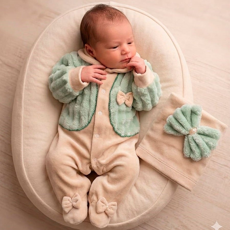 Saida de Maternidade Bebê Menina Plush Inverno Sintonia Alice Rosê com Manta