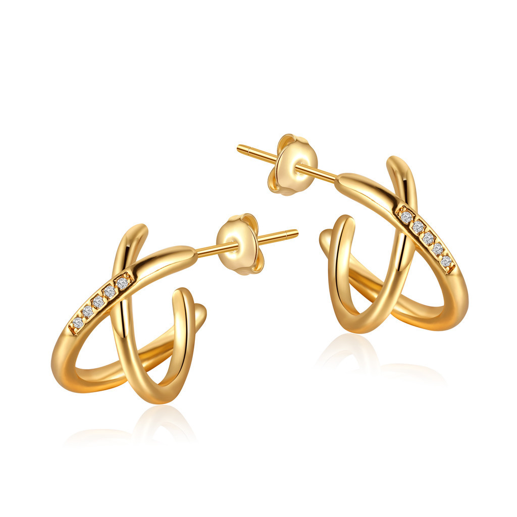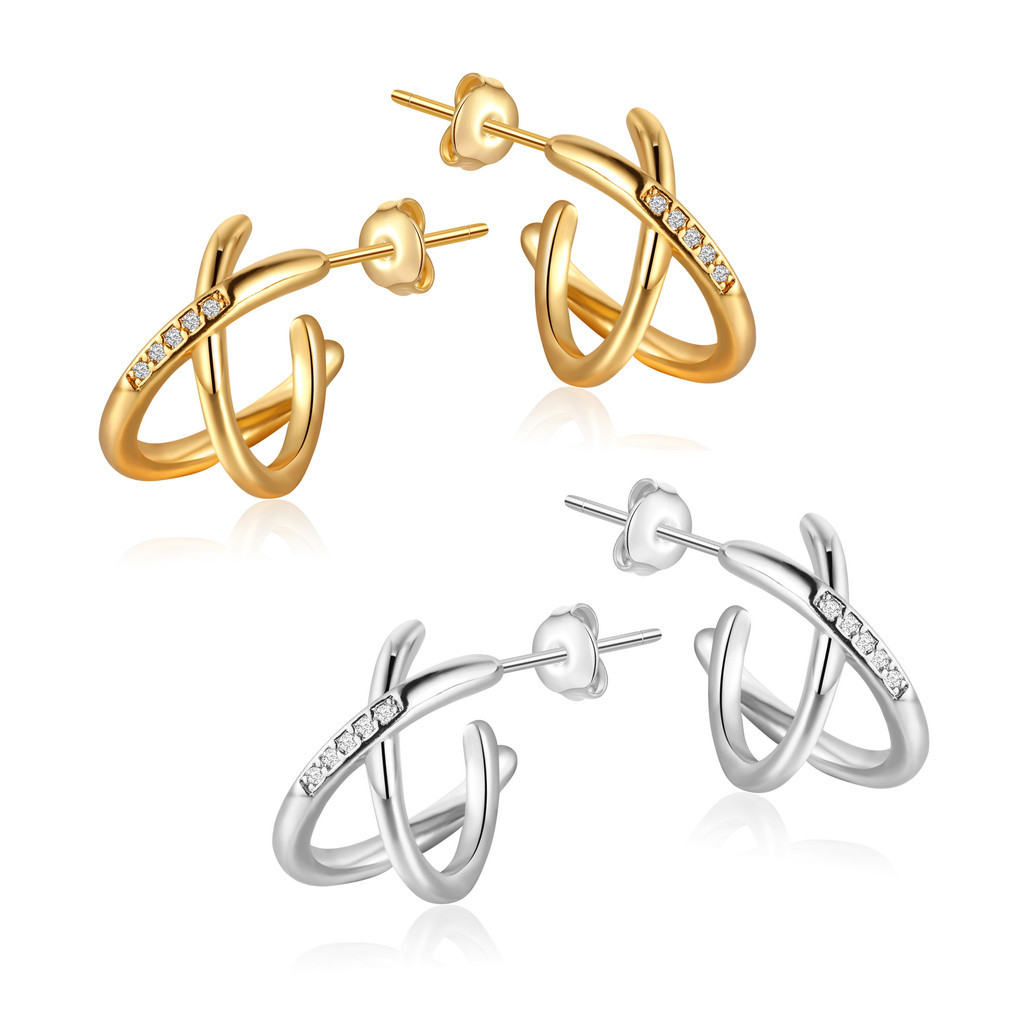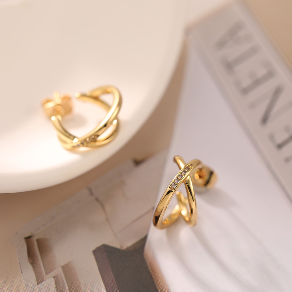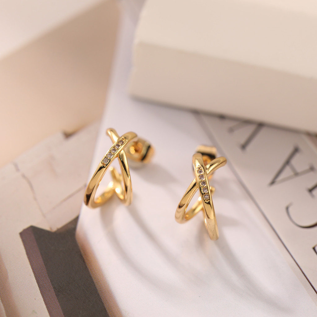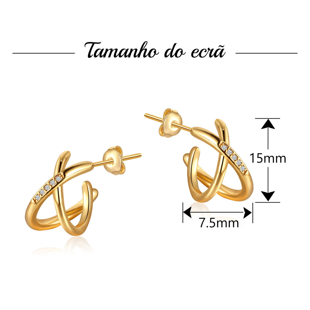 Brincos de punho de letra X de prata banhados a ouro 18K para mulheres adolescentes brincos X wrap
