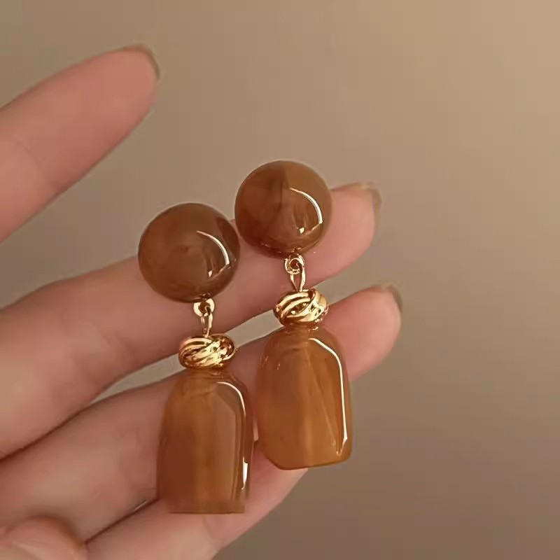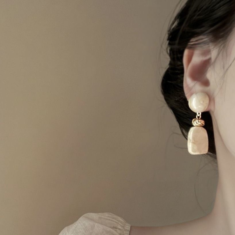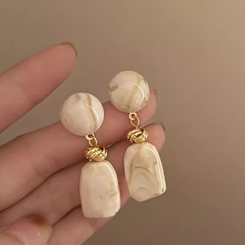 Brincos longos de acrílico retrô francês, brincos leves de luxo de nicho de alta qualidade, brincos de cor creme
