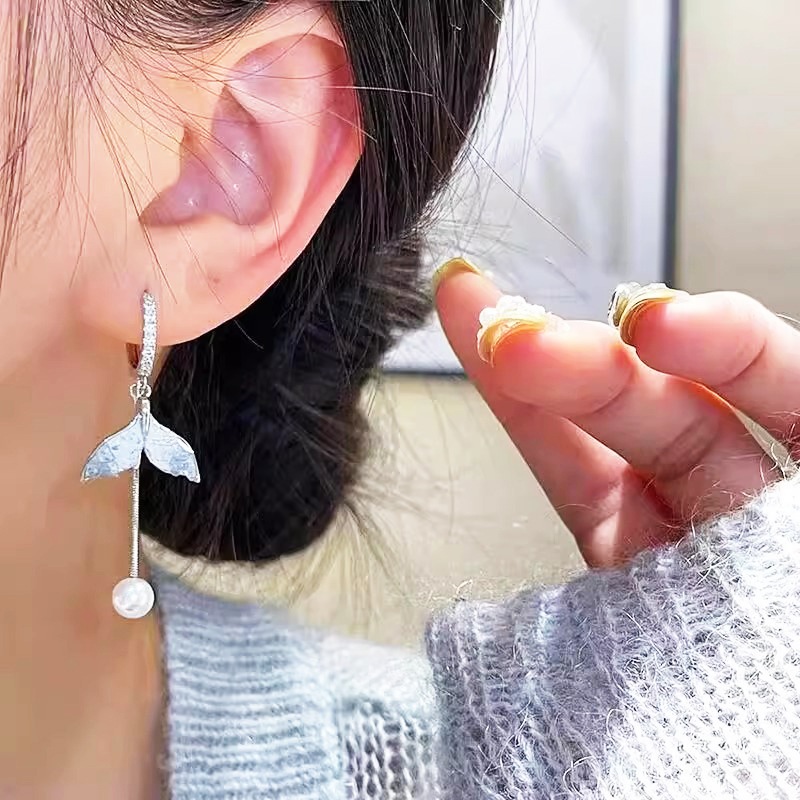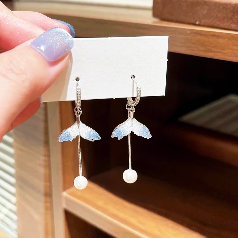 Brincos De Pérola De Cauda De Sereia , Pino De Borlas compridas Para Mulheres Estilo Elegante De Fada