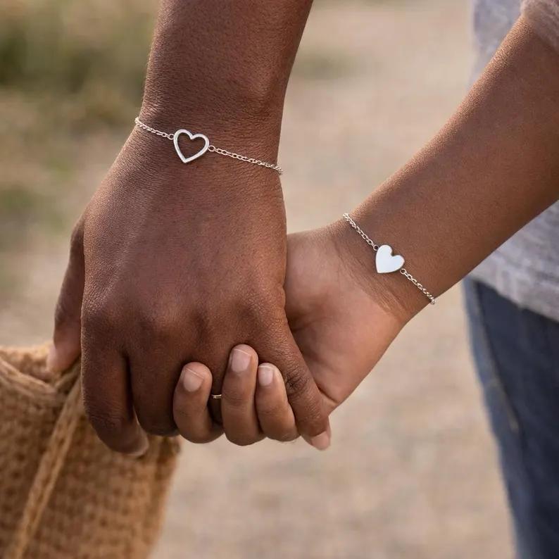 Pulseira De Coração De Amor Para Casais/Amizade – Presente De Joia Ajustável Com 2 Pacotes