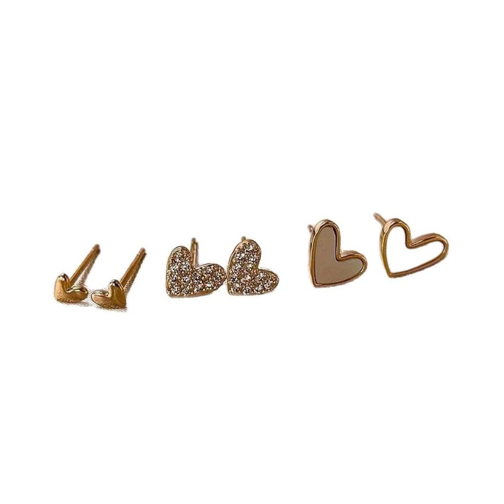 Um conjunto versátil de três brincos de liga metálica em formato de coração – a escolha perfeita para presente.