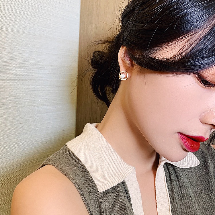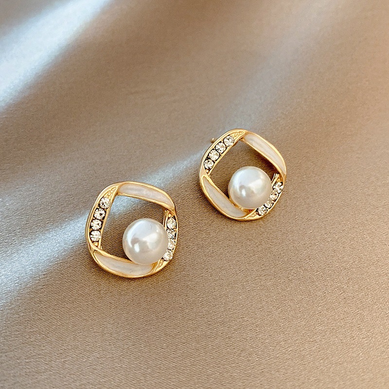 Brinco Geometria vazada Perola Zircônia Femininos Banhado Dourado Ouro