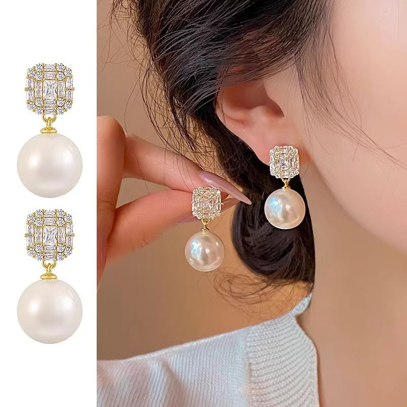 Brincos de pérola de zircônia femininos brincos franceses 2025 promoção presente de dia dos namorados