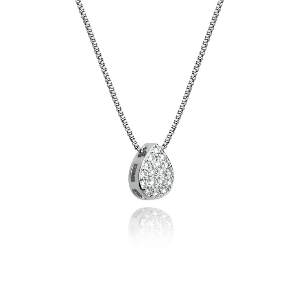 Colar Femenino Delicado Folheado a Platina Zircônia Cravejada Gota Luxo