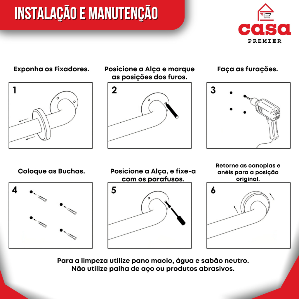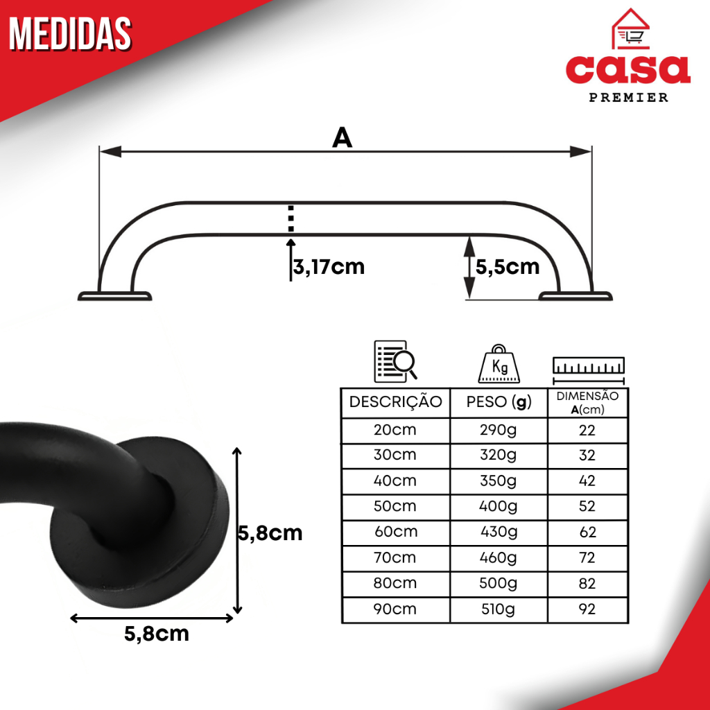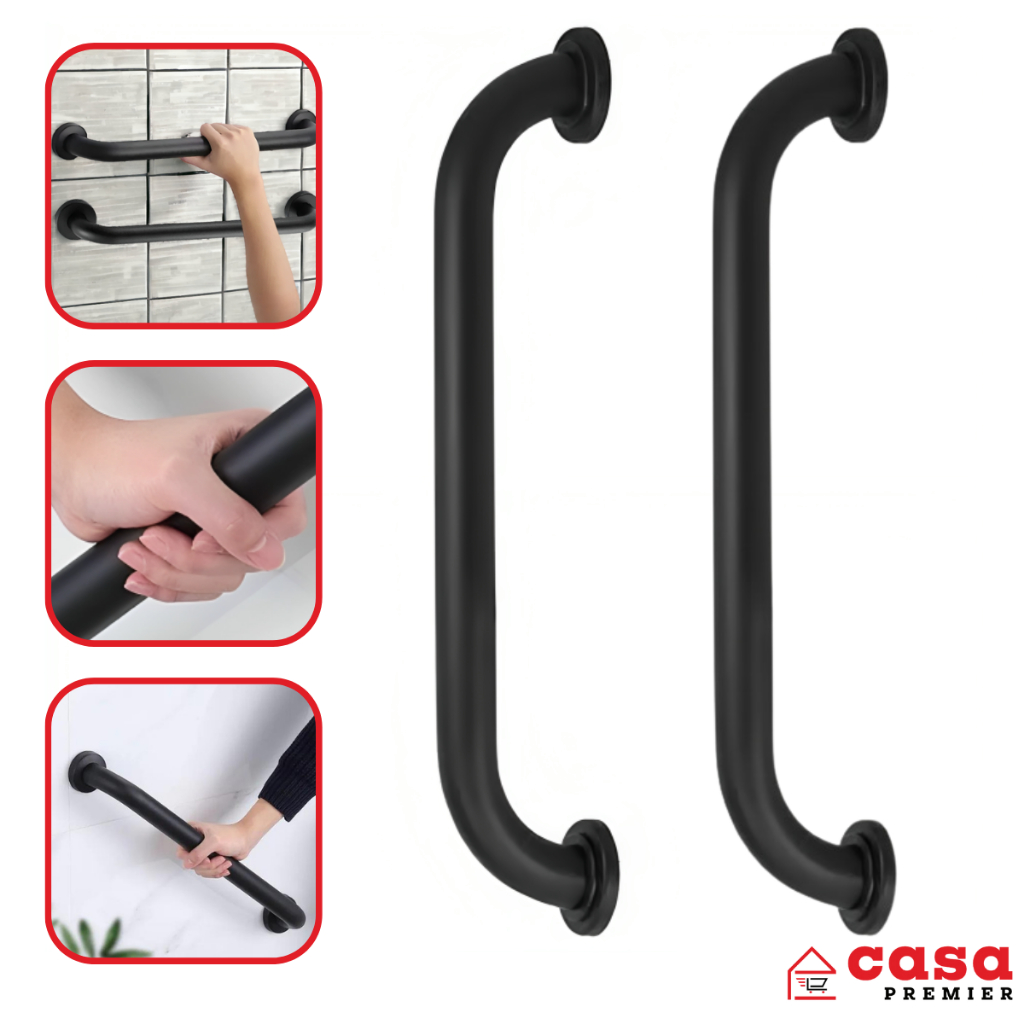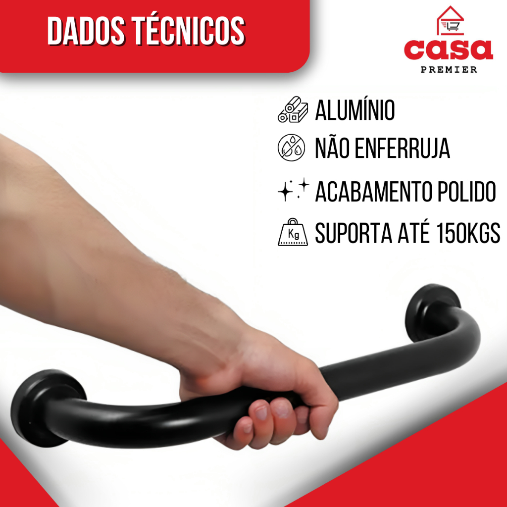 Kit 2 Barras de Apoio 50cm Preta Alça Suporte Deficiente Idoso Banheiro