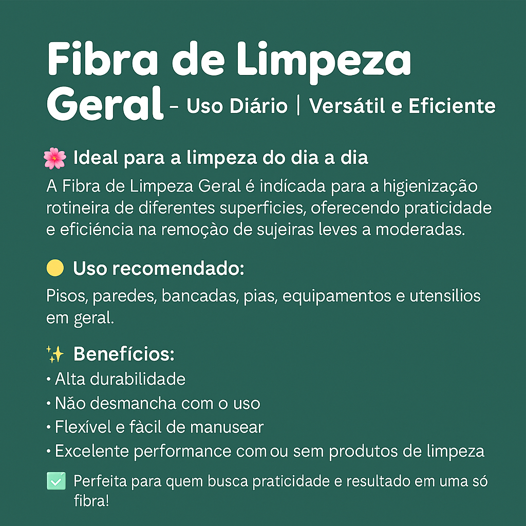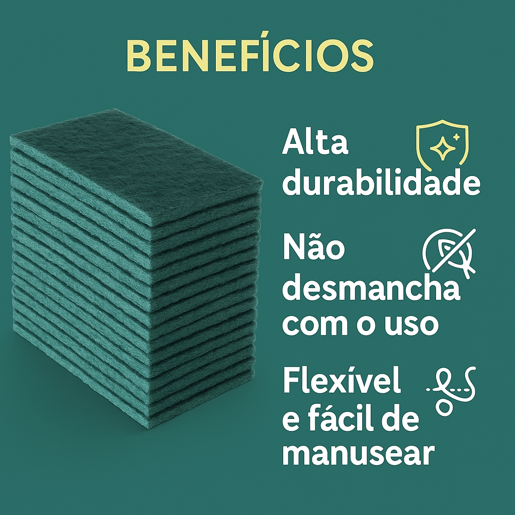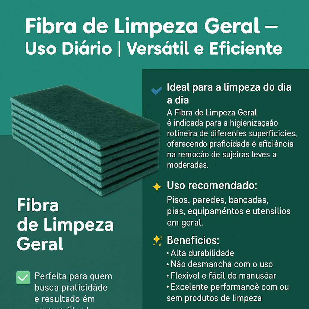 Kit Fibra Limpeza Geral Verde 26cm×10cm – Multiuso para Piso, Parede, Bancada