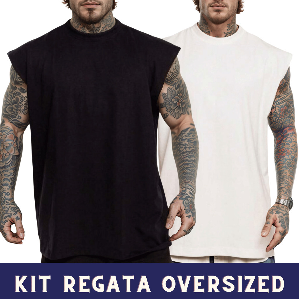 Kit 2 Camisetas Regatas Oversized Masculina Lisa Camiseta Streetwear 100% Algodão