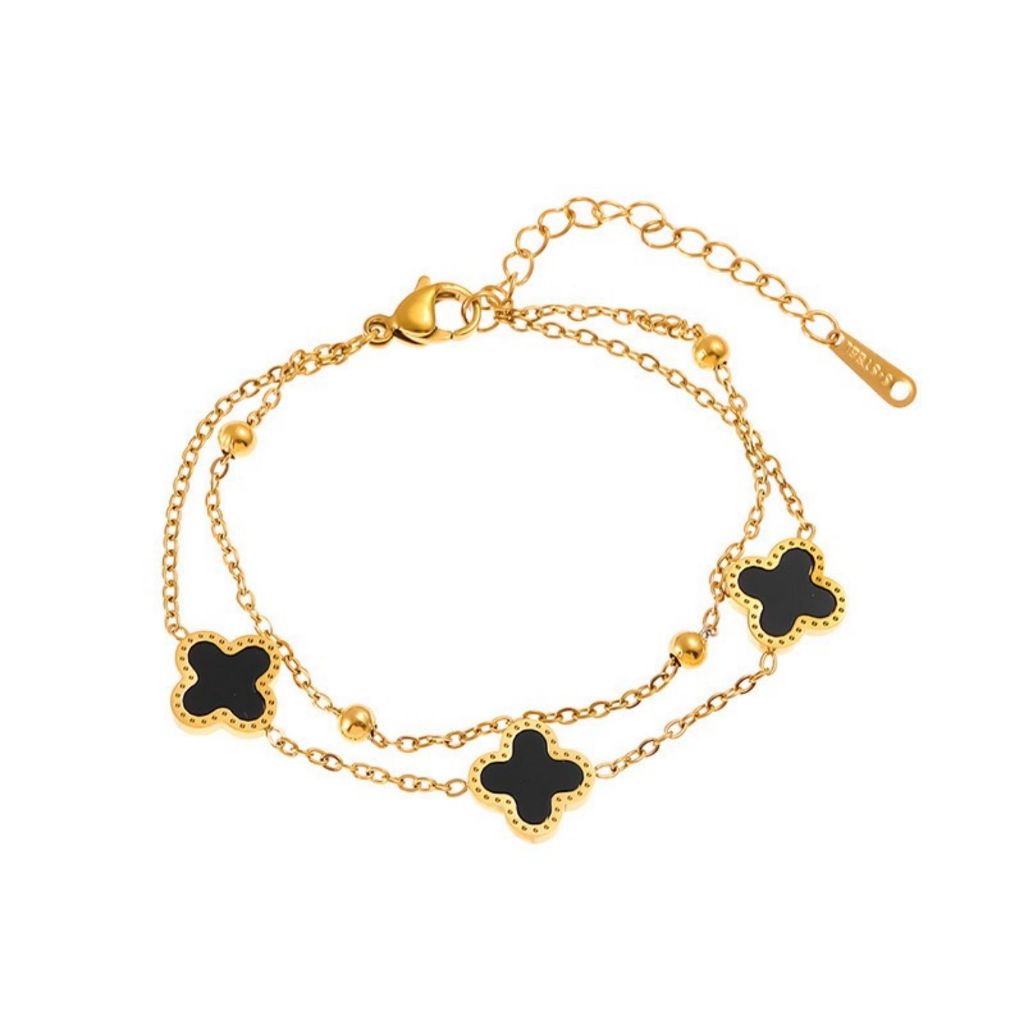 Tornozeleira feminina sexy com design de nicho, joia de aço titânio 18K, dupla camada, trevo de quatro folhas, personali