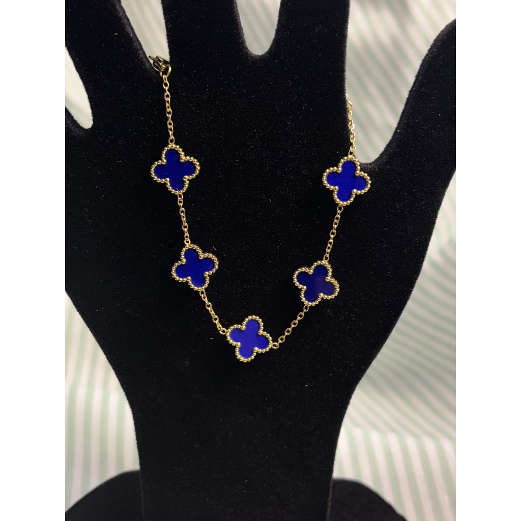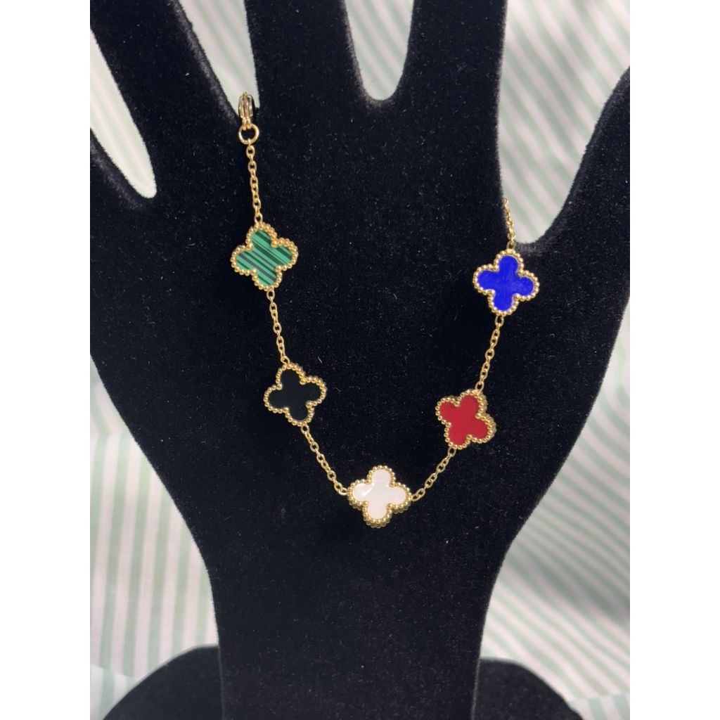 Pulseira de trevo de quatro folhas em aço inoxidável 18 com remendo de madrepérola dupla face que não desbota 17+5 cm