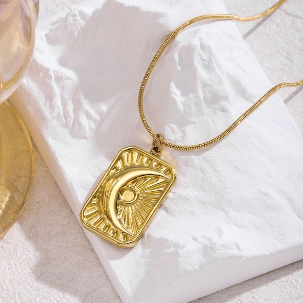 Colar com pingente geométrico de lua em estilo europeu e americano, corrente para clavícula em aço inoxidável 18K.