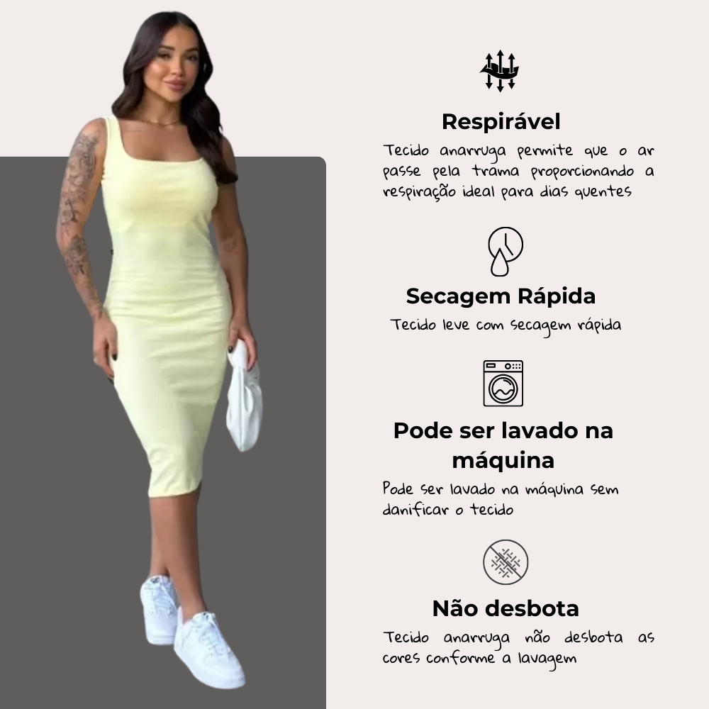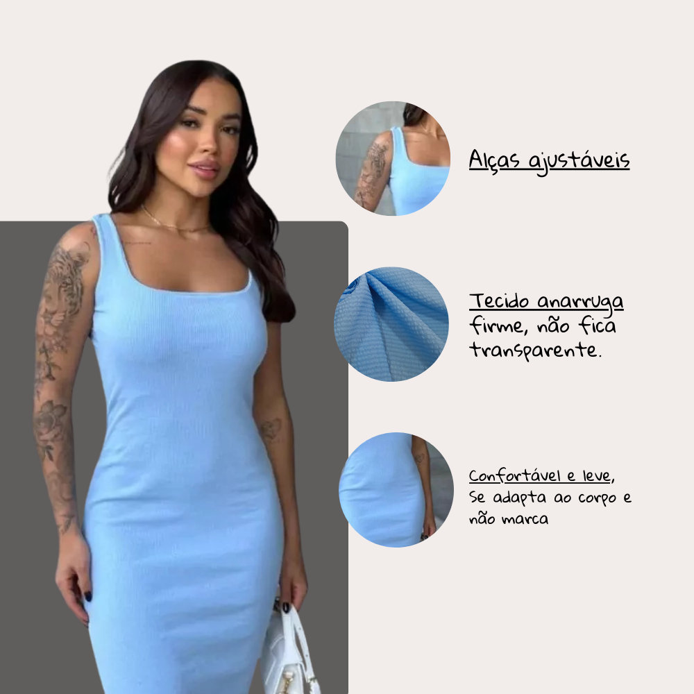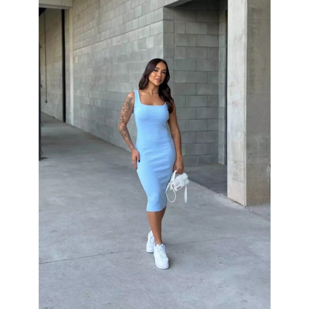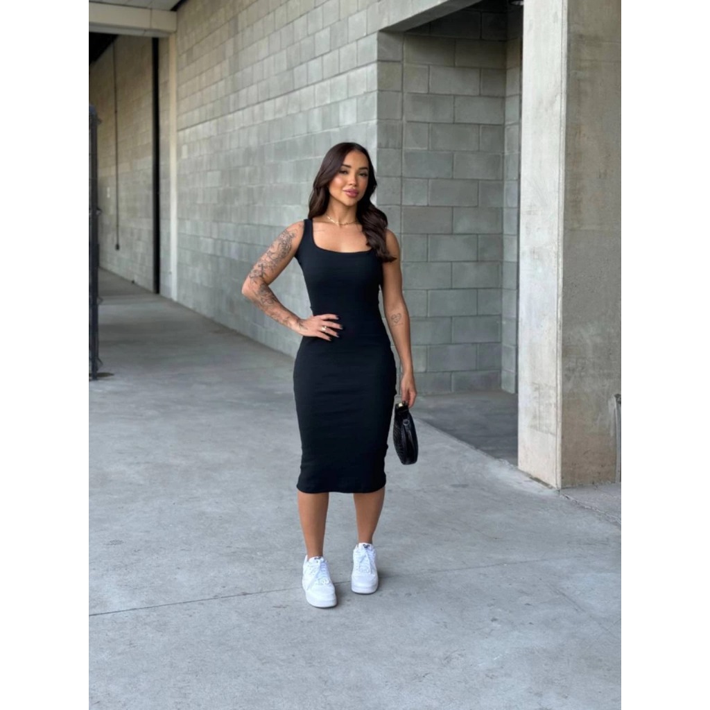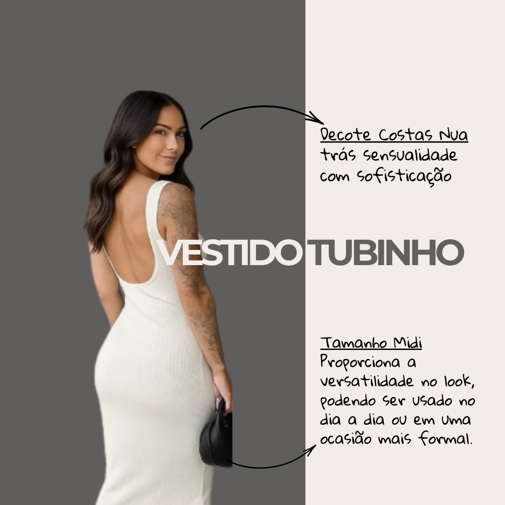 Vestido Midi Tubinho Canelado Costas Nuas Sexy Colado Modelador Moda Gringa Alça Fina Confortável