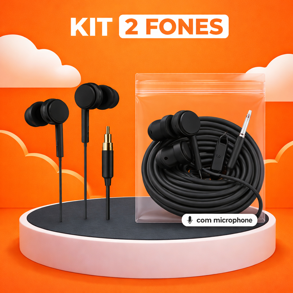 Kit 2 Fones de Ouvido com Fio P2 e Microfone para Celular, Notebook e Aula Online