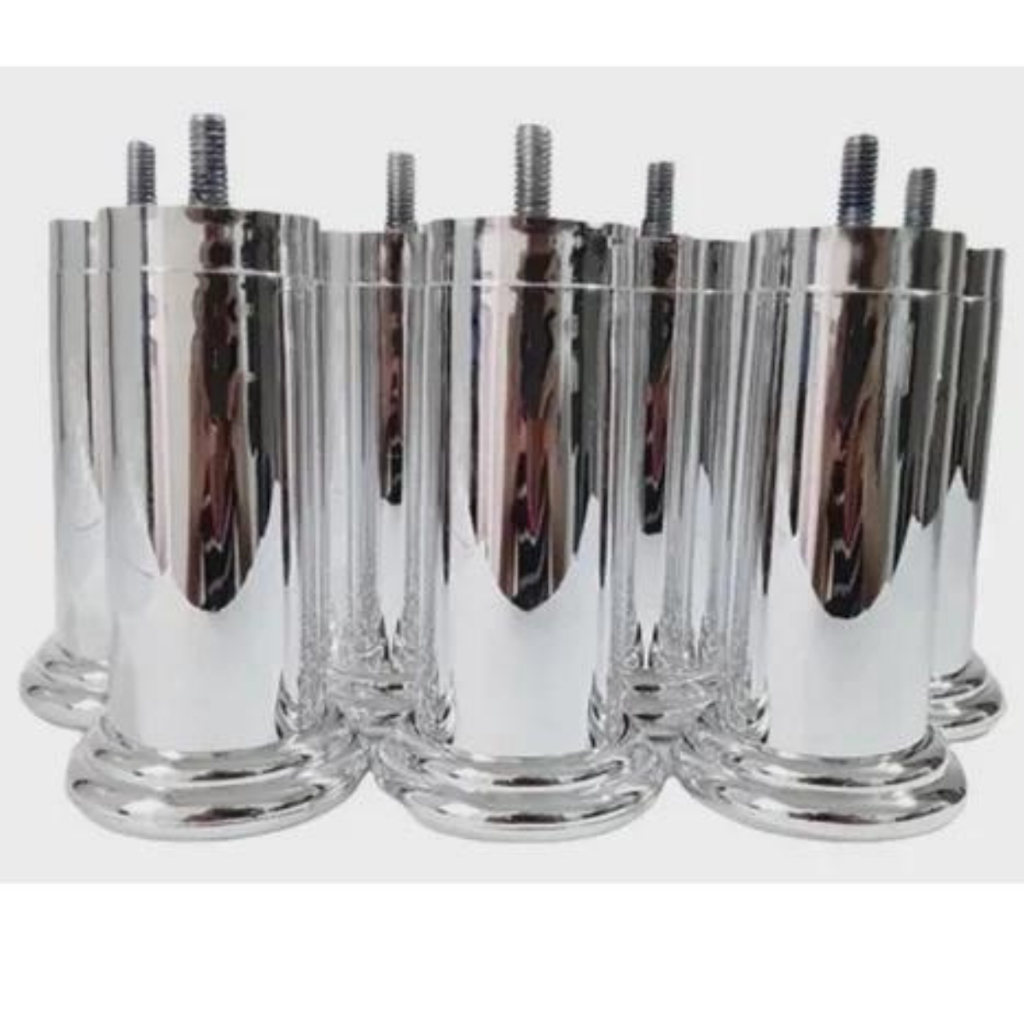 Pé Pezinho Prateado C/6 com Unidades para Cama Box 10cm - Toque Elegância e Estabilidade para seus móveis