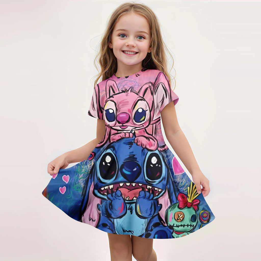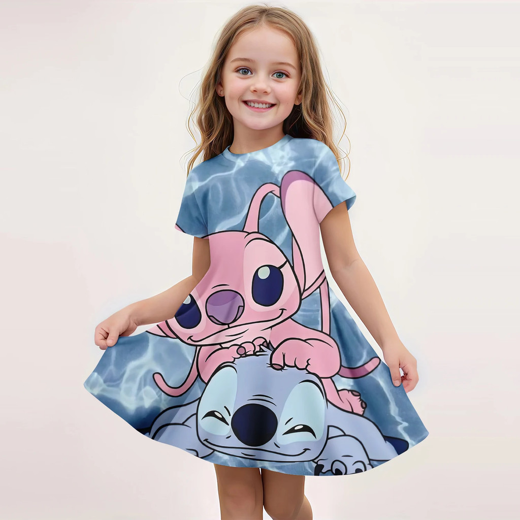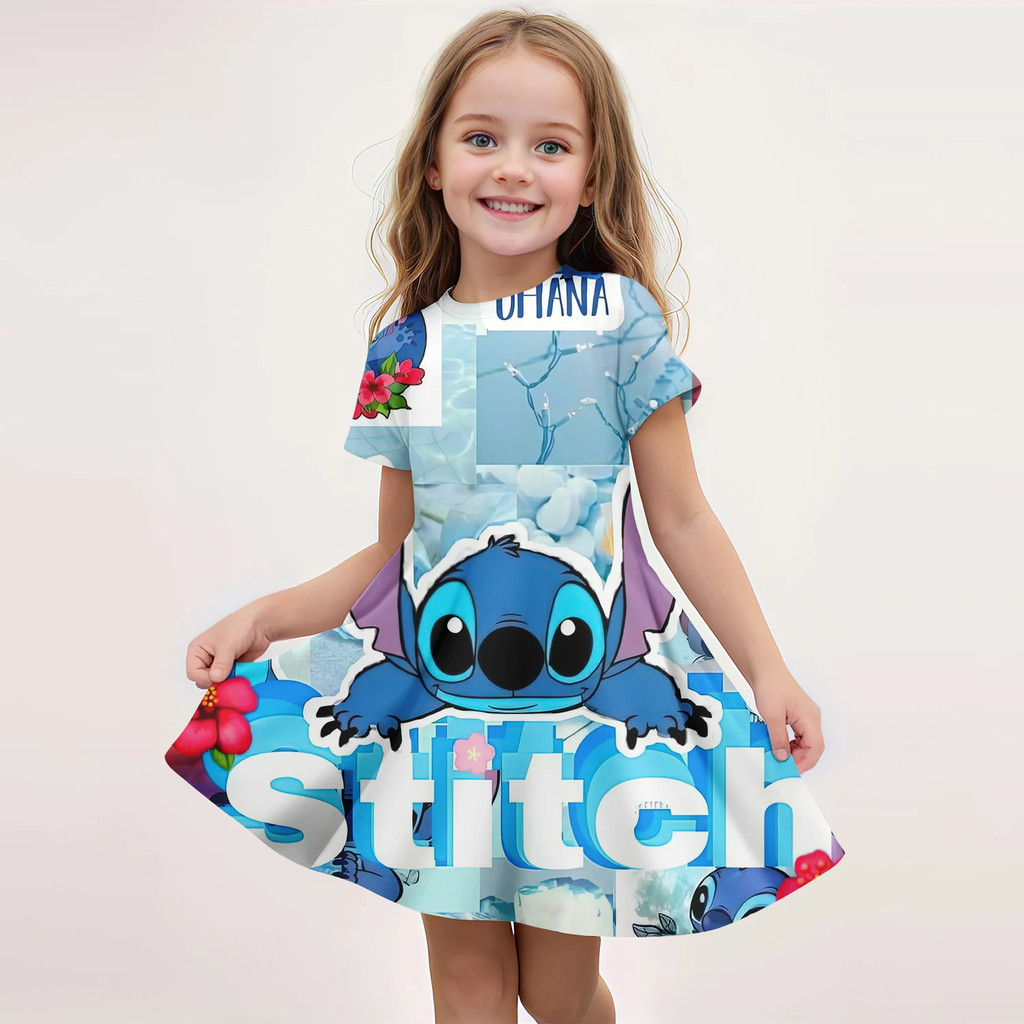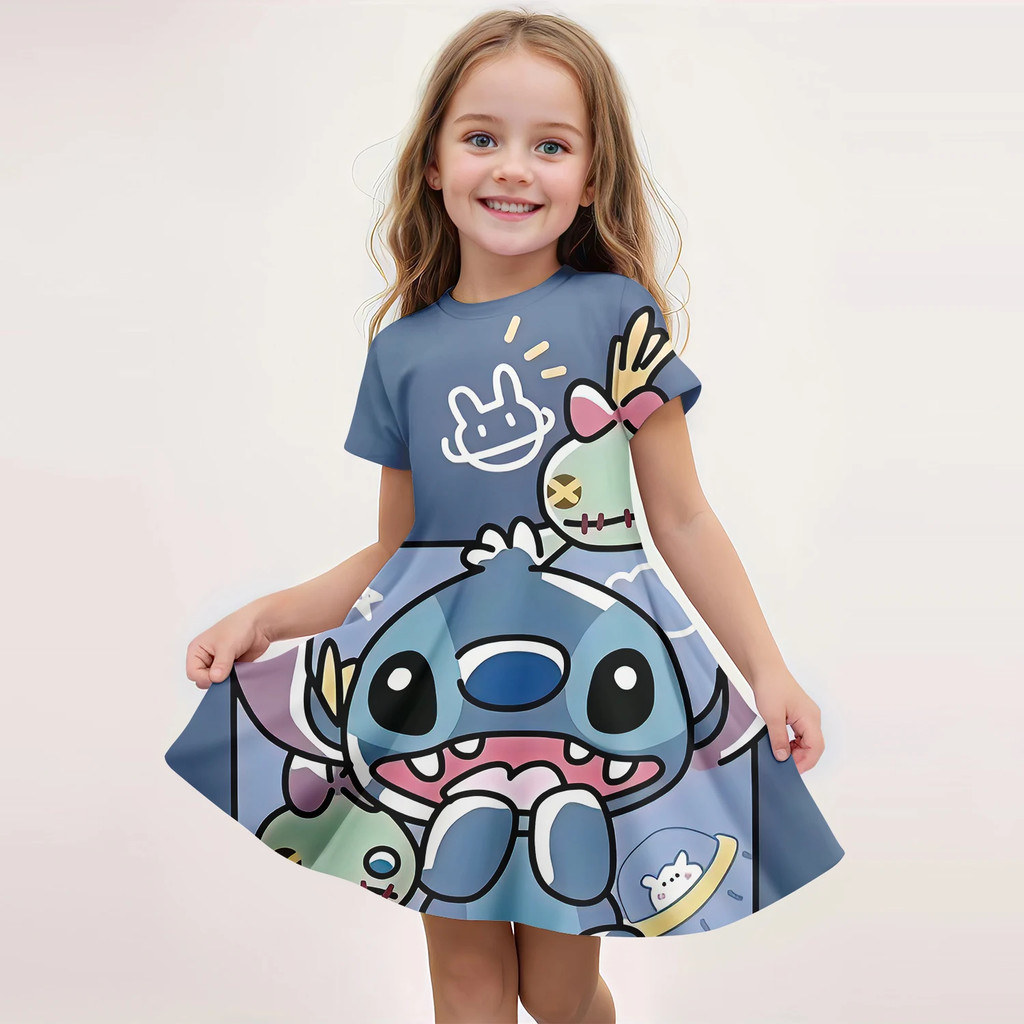 Stitch Festa Casual Casa Vestidos Para 3-14 Anos Crianças Bebê Menina Impressão 3D Imitação De Algodão Vestido De Mangas