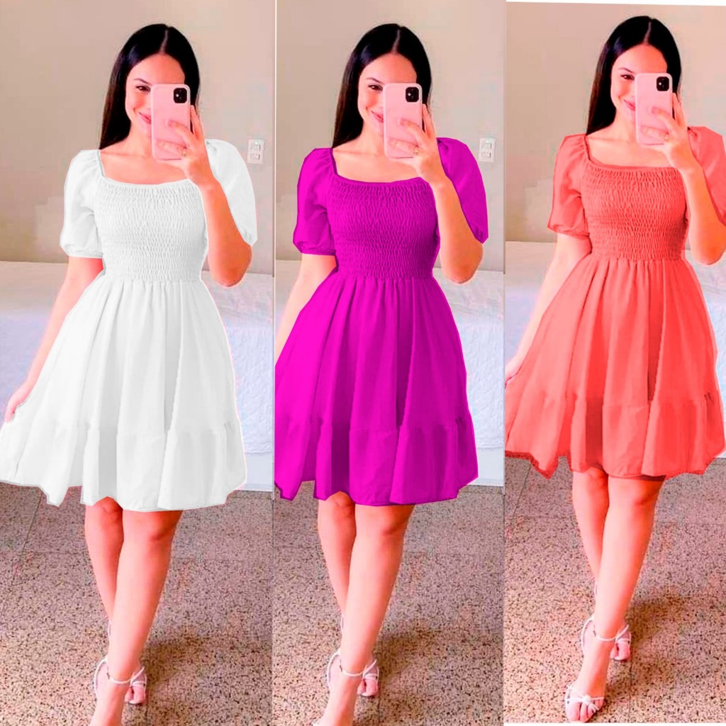 Vestido feminino curto com manga bufante lastex premium REF 110