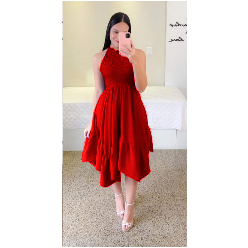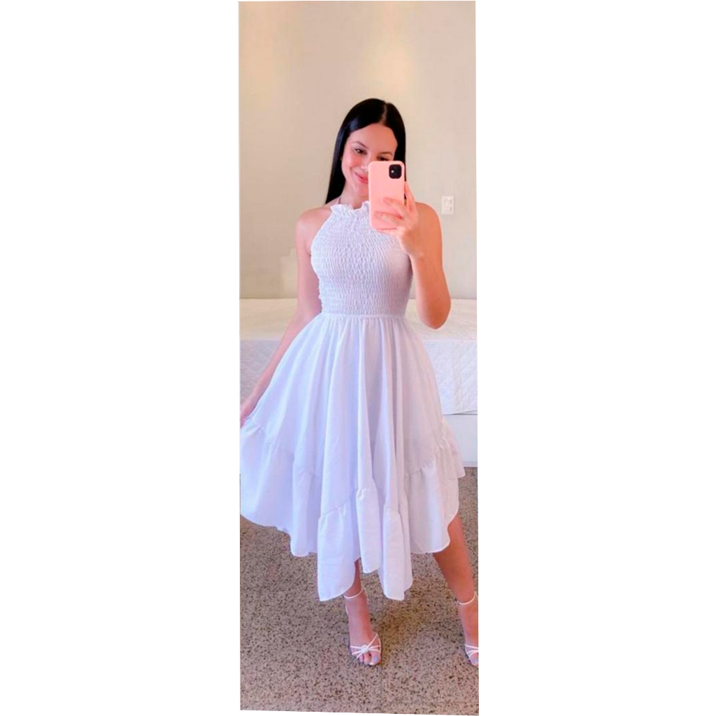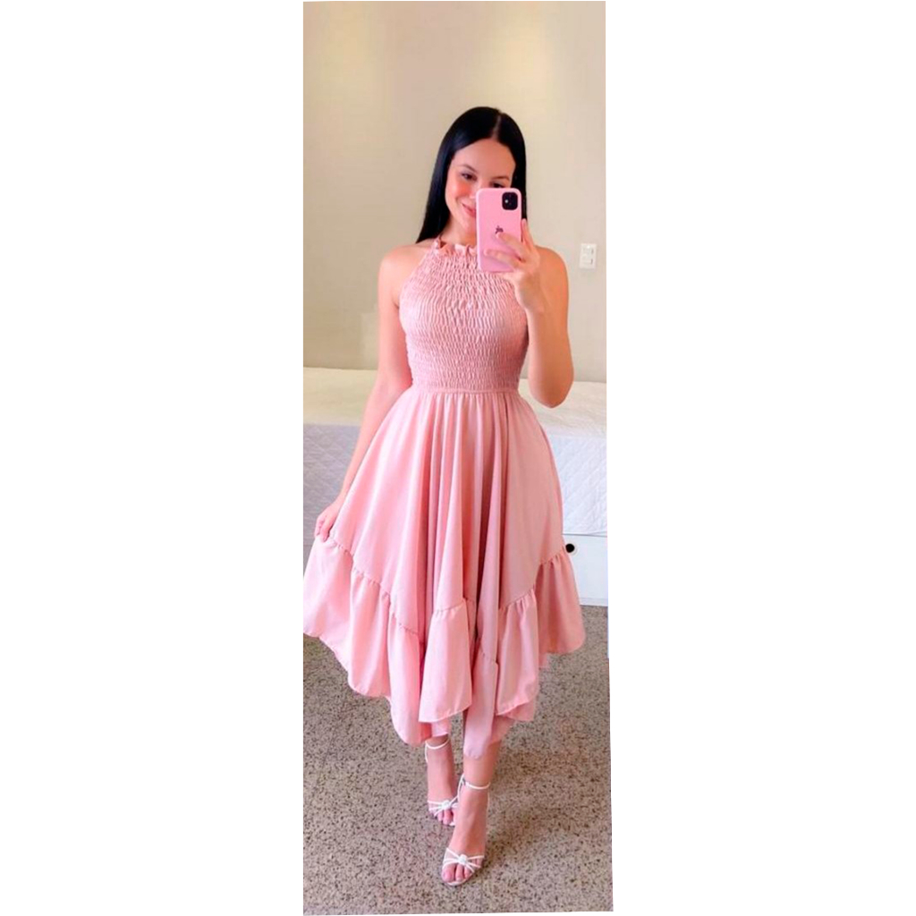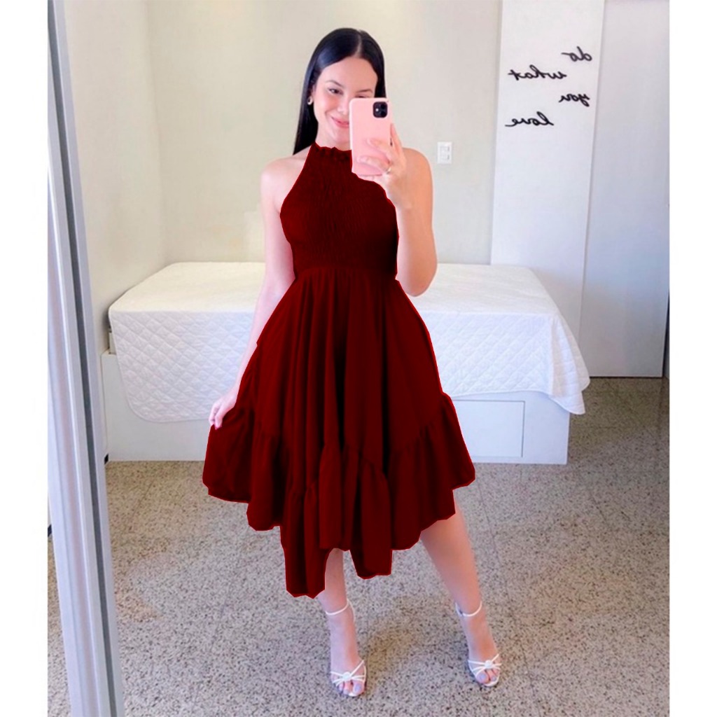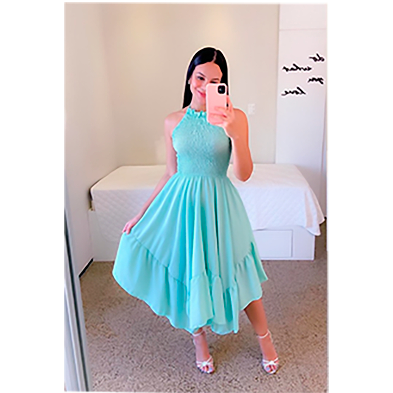 Vestido feminino midi gola alta elastex saia rodada premium REF 111