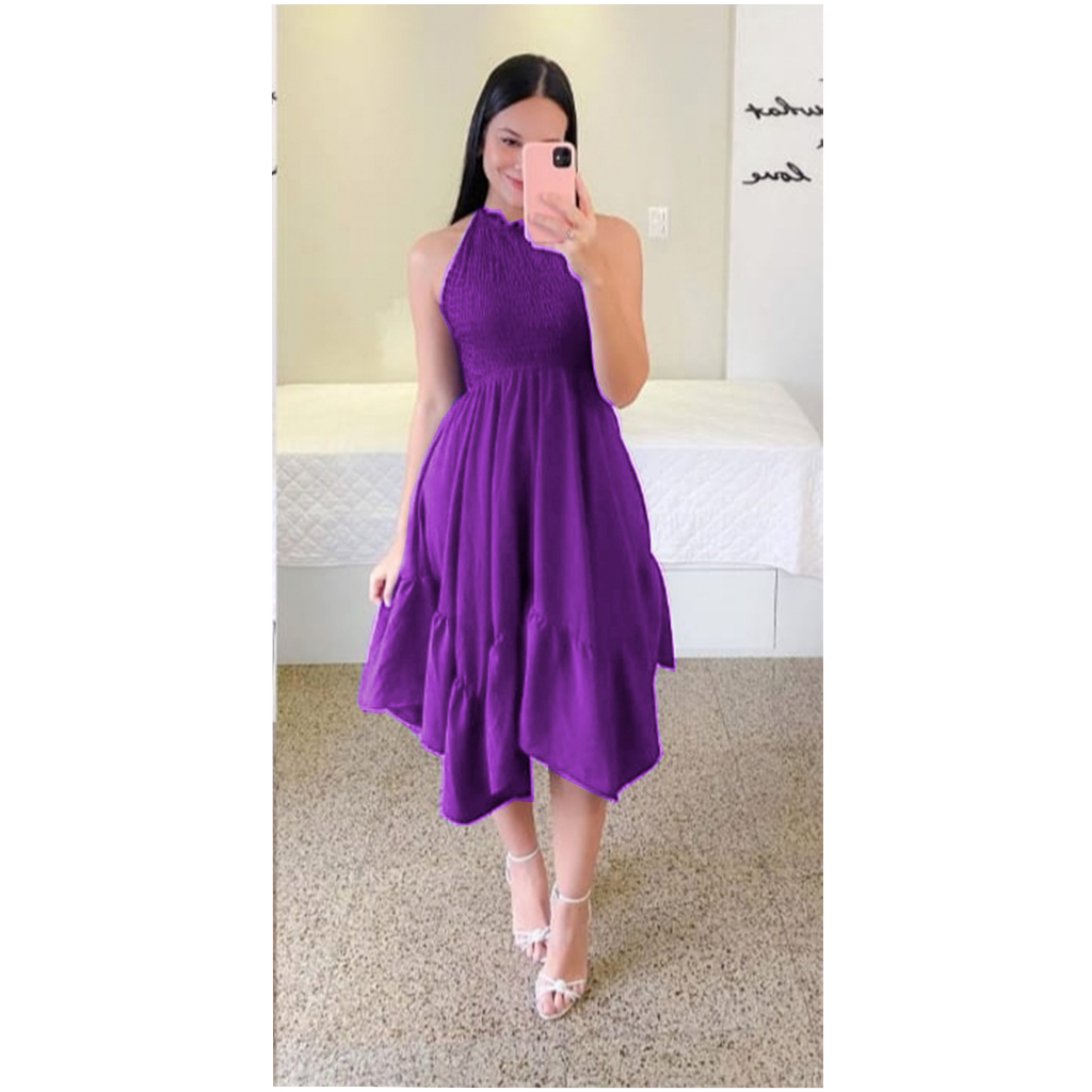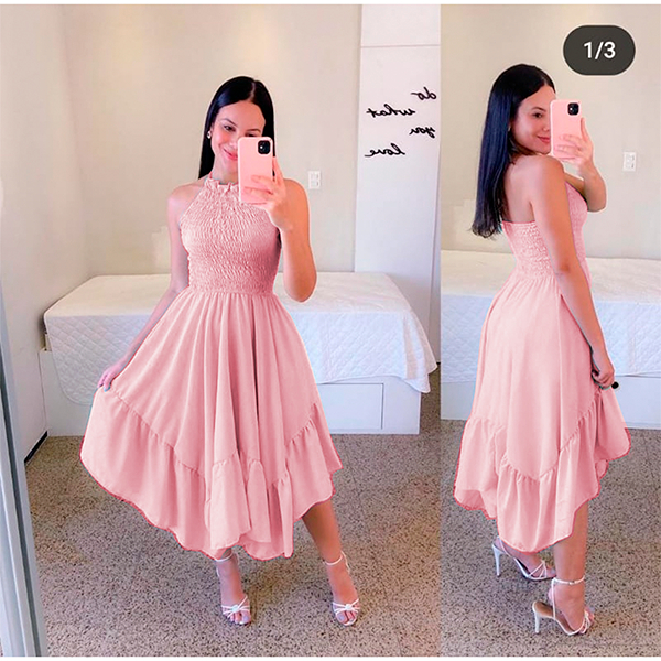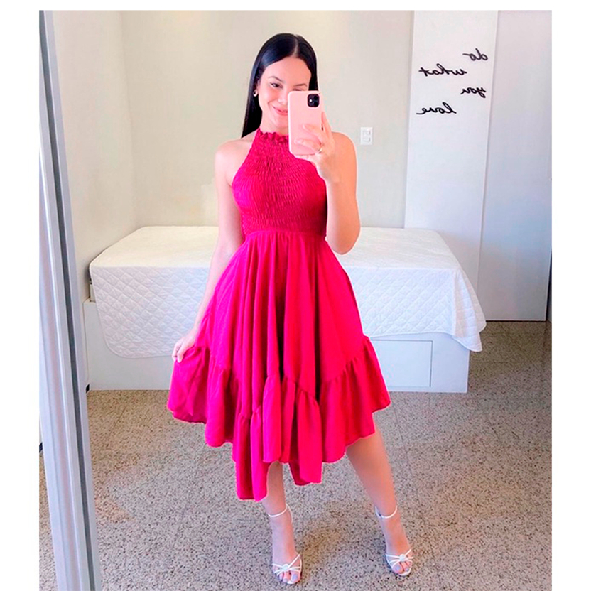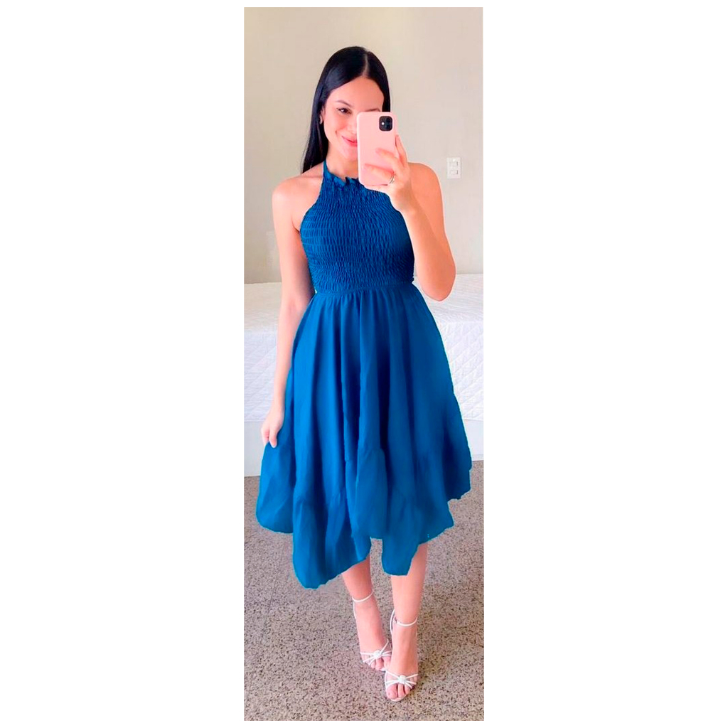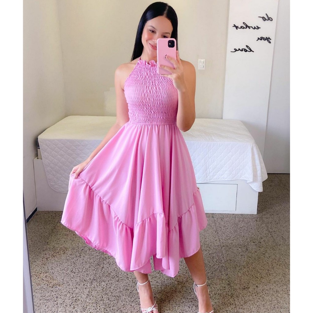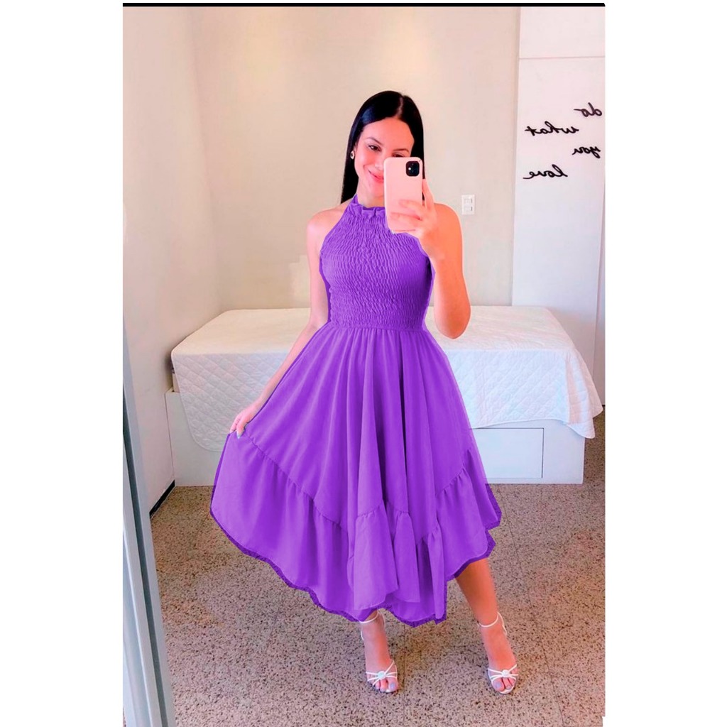 Vestido feminino midi gola alta elastex saia rodada premium REF 111