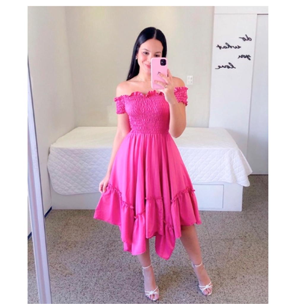 Vestido feminino midi com manguinha lastex premium REF 103