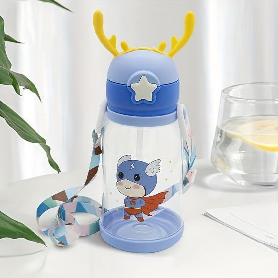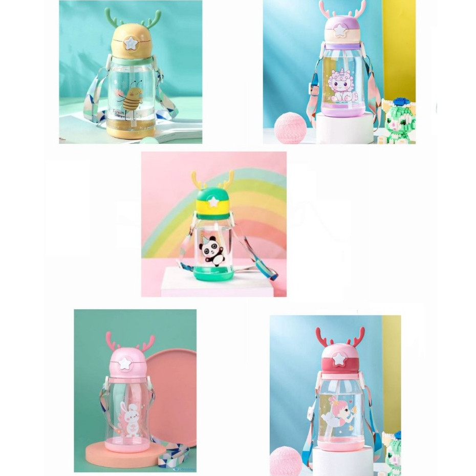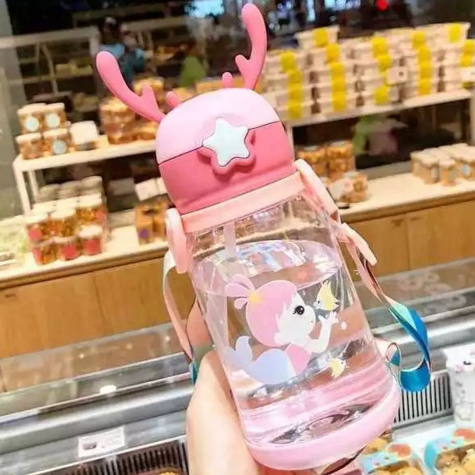 Garrafa Infantil Bebe com Tampa e Canudo e Alça 600ML Chifre