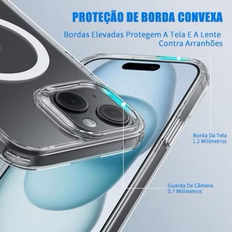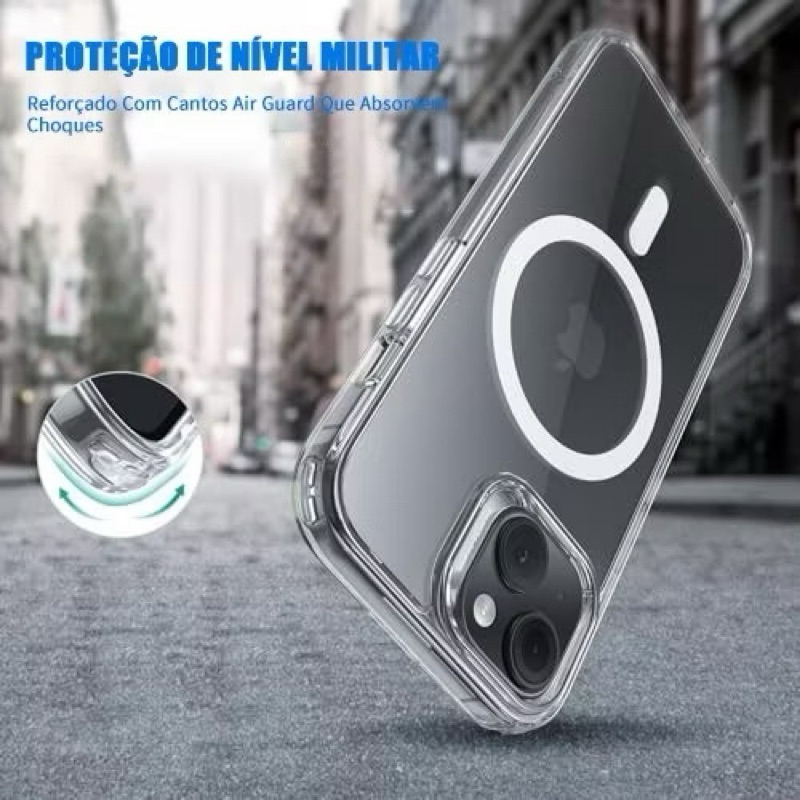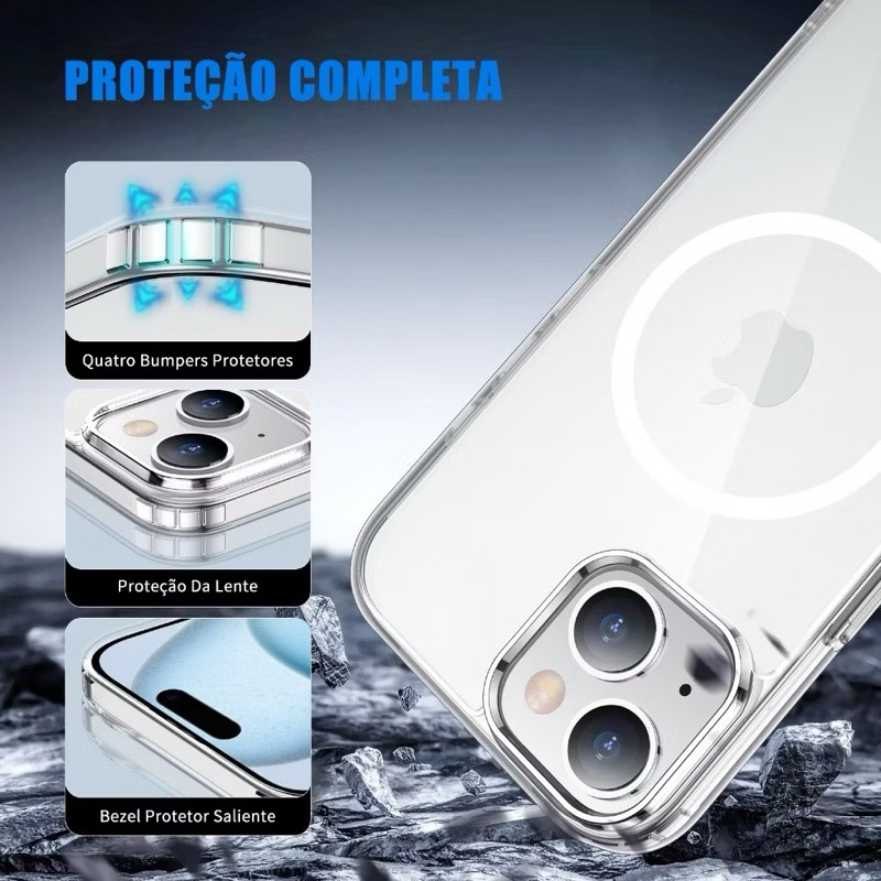 Capa Capinha Magnética Magsafe Transparente Para IPhone 7 8 XR 11 12 13 14 15 16 16e Pro Max Plus