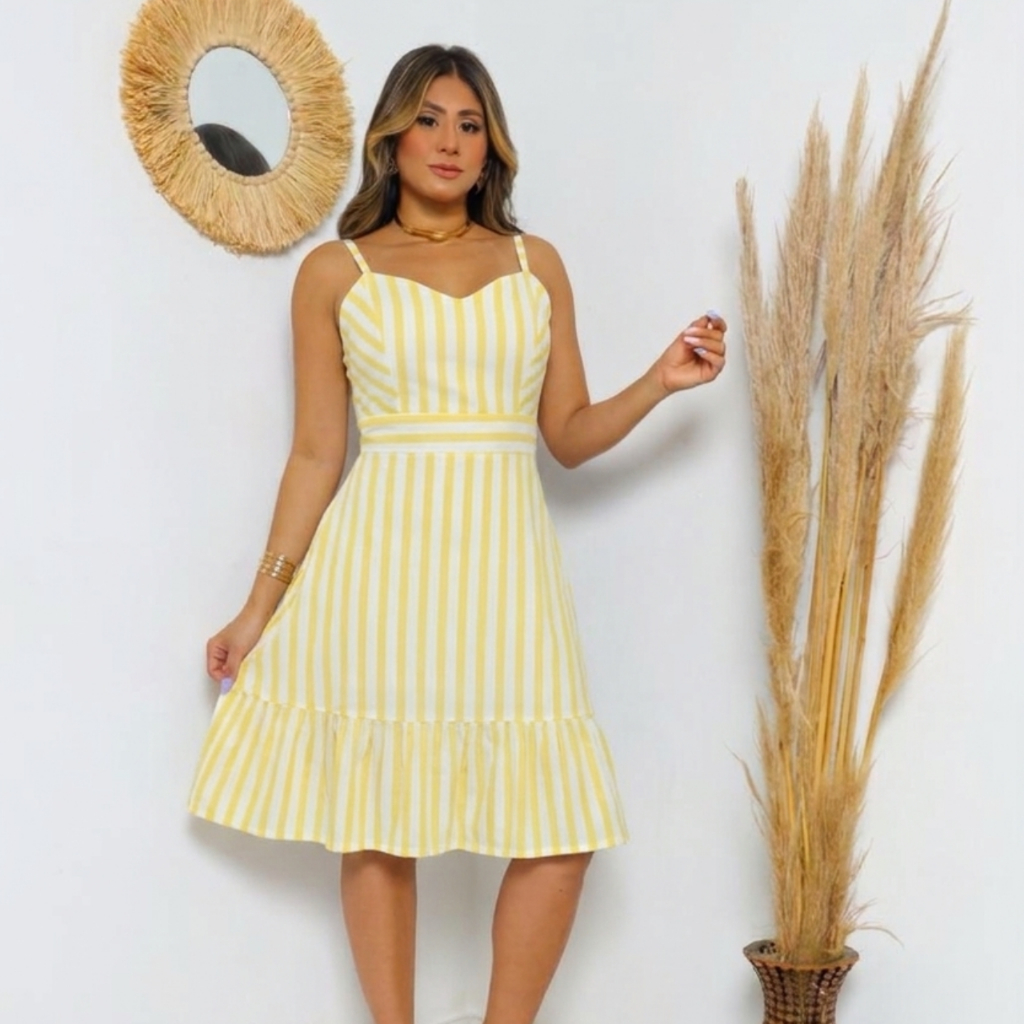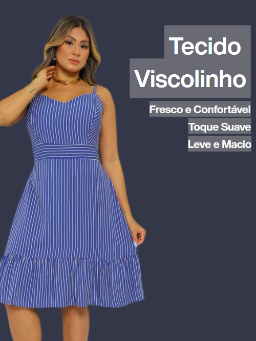 Vestido Feminino Curto com Alcinha Moda Verão Alças Reguláveis Soltinho Leve Listra Bojo Forro