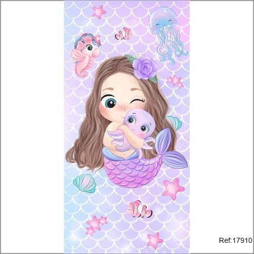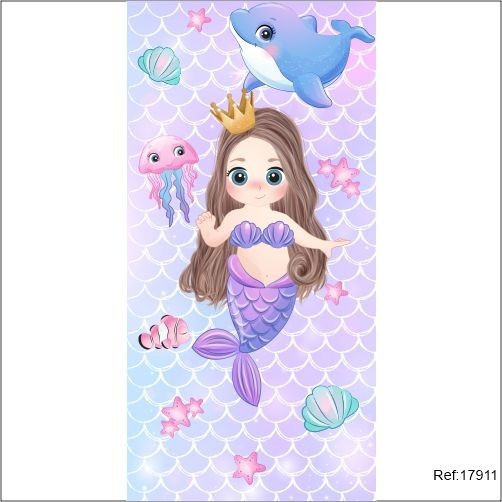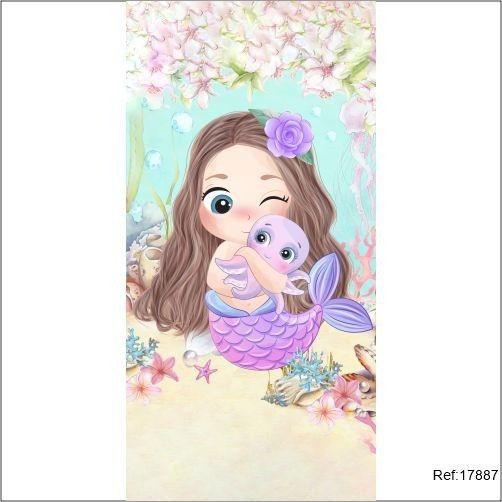 Painel Festa Lateral Sereia Cute Fofa 1x2 Em Tecido