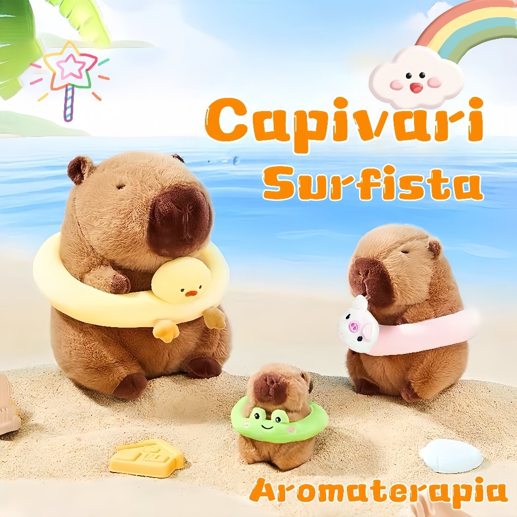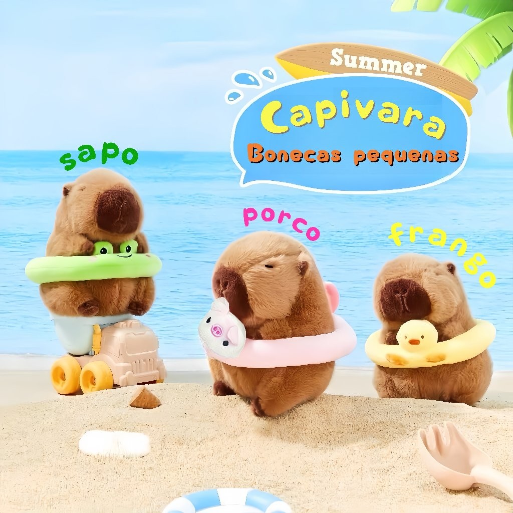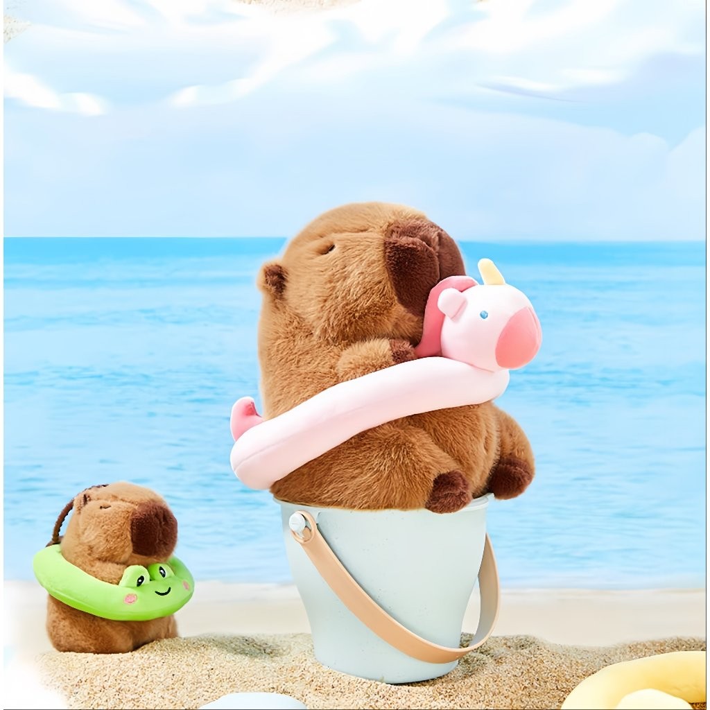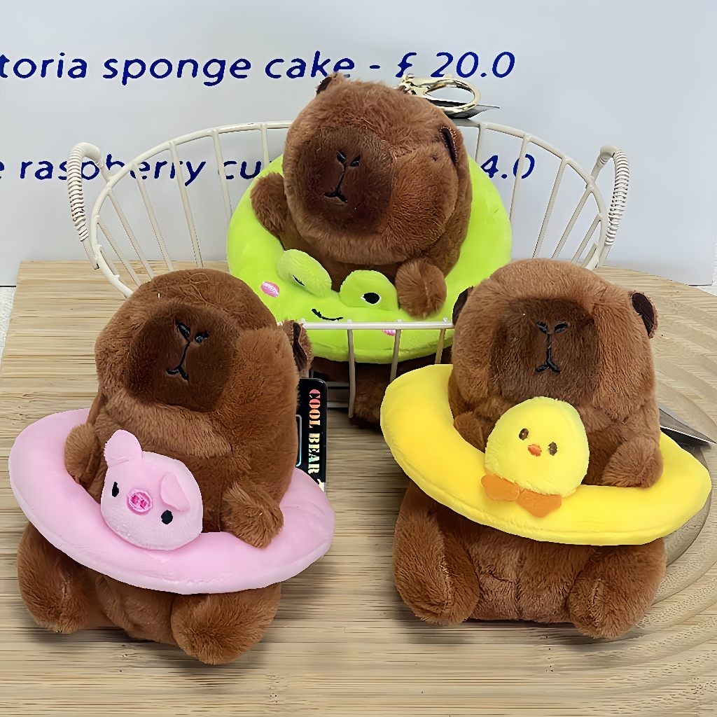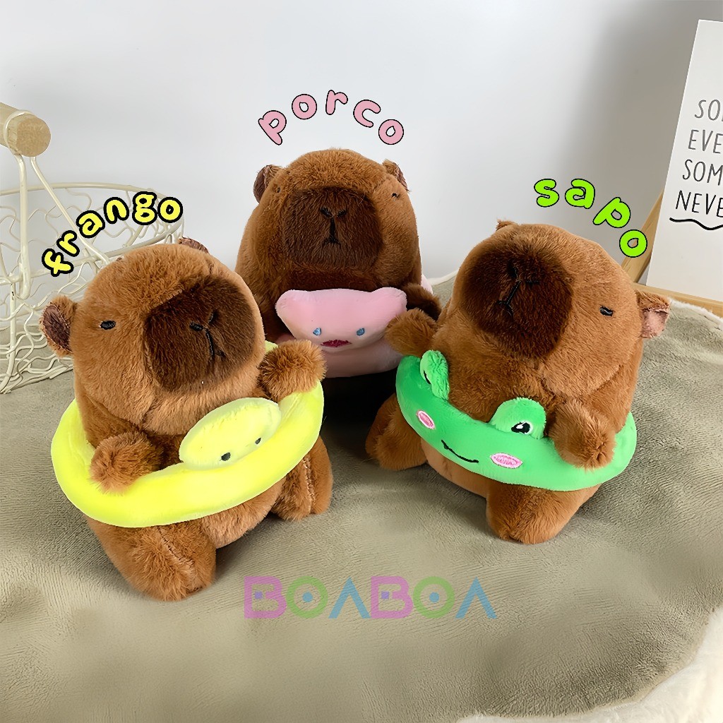 Chaveiro de pelúcia com pingente de bolsa anel de natação capivara, boneca fofa, brinquedos infantis