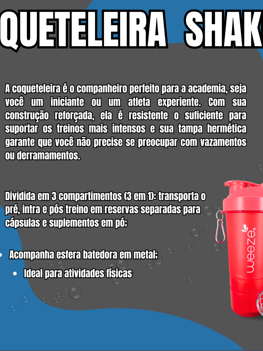 Coqueteleira Shaker Academia Compartimentos Suplemento