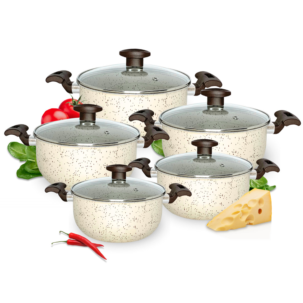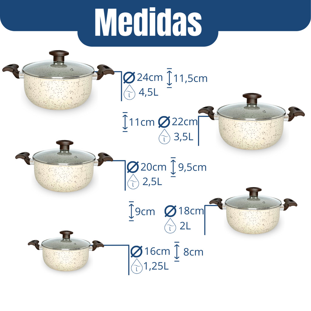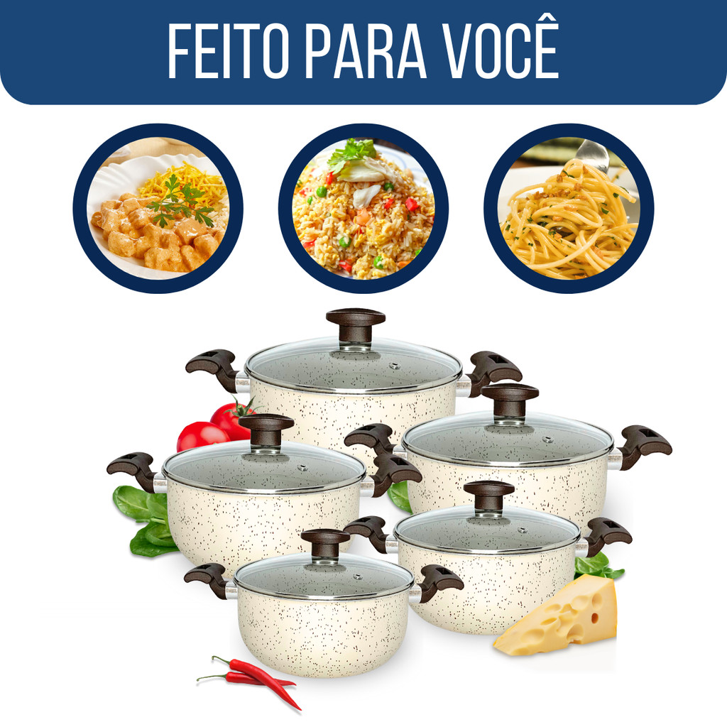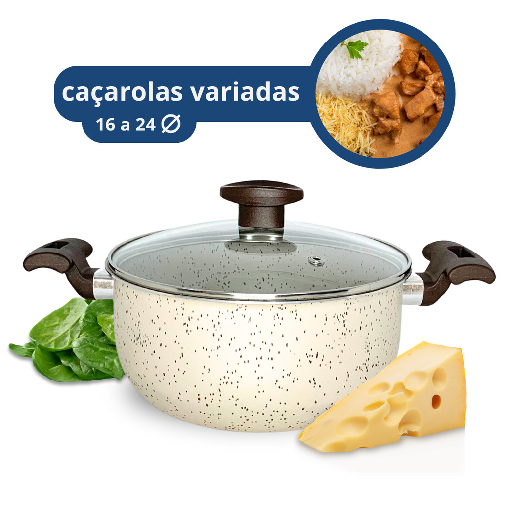 Jg Caçarolas Panela Antiaderente Teflon Marfim Tampa Vidro