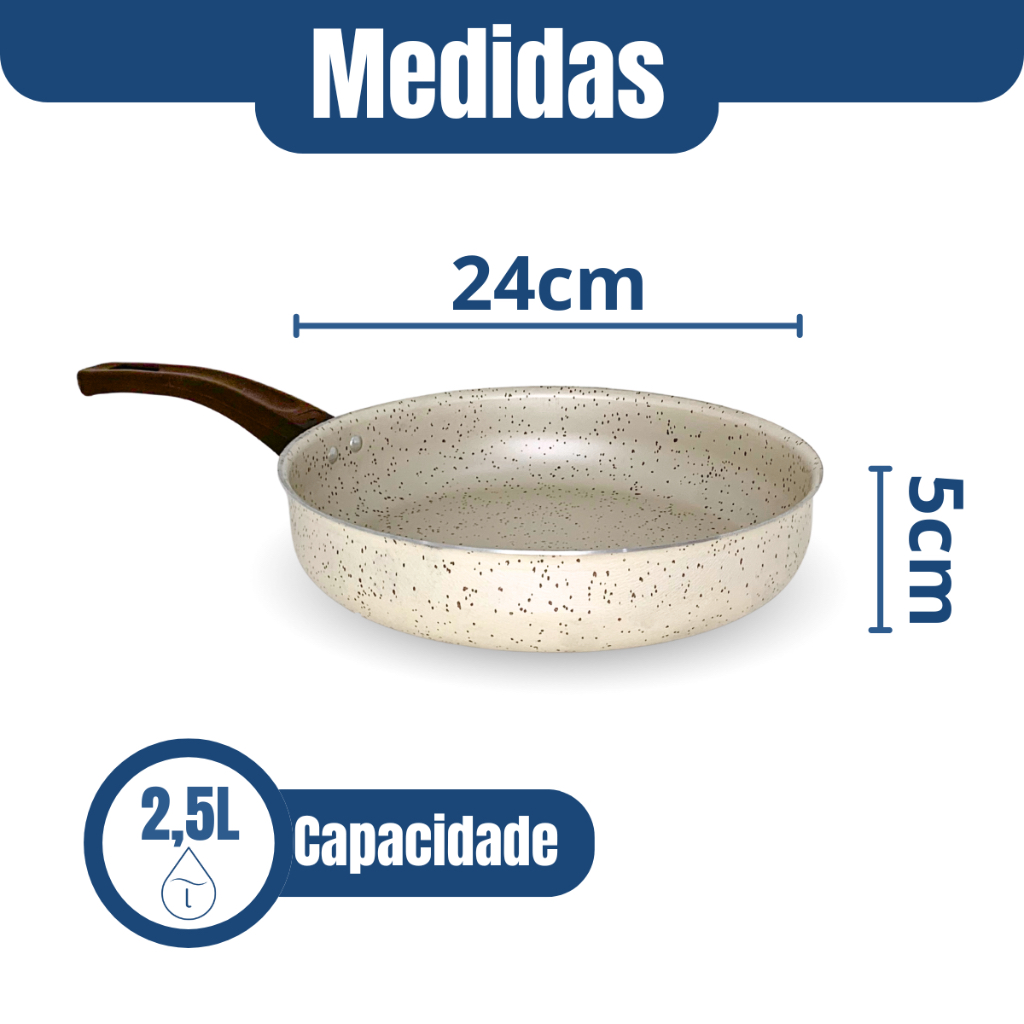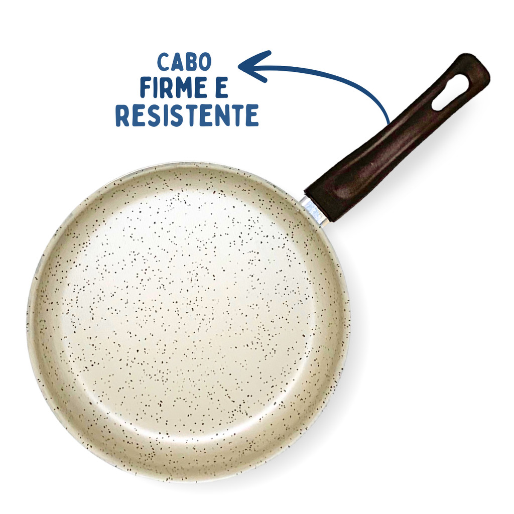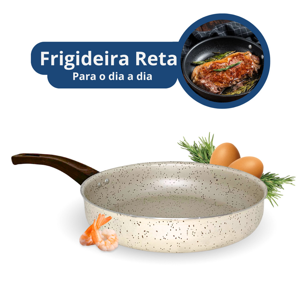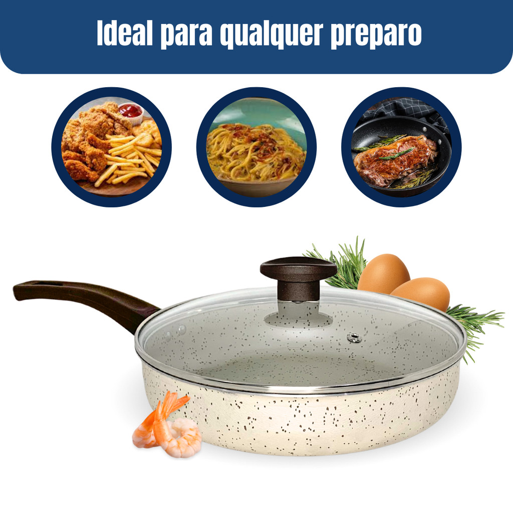 Frigideira Reta 24 Antiaderente Teflon Marfim Tampa de Vidro