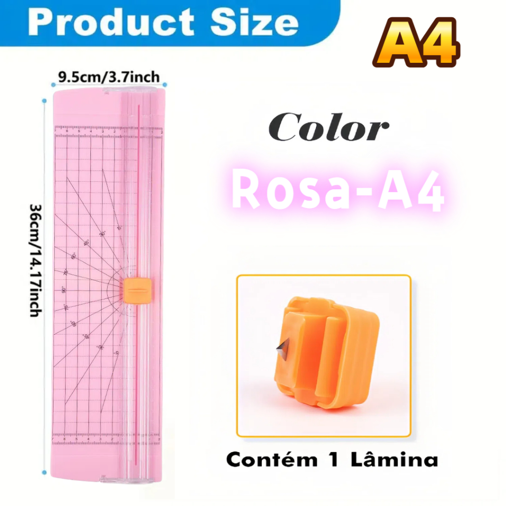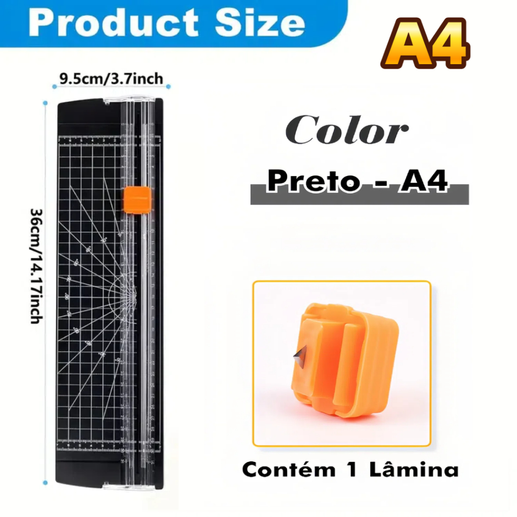 Guilhotina Portátil de Papel A4 para Cortador Profissional com Lâmina de Precisão para Escritório, Scrapbook e Artesanat