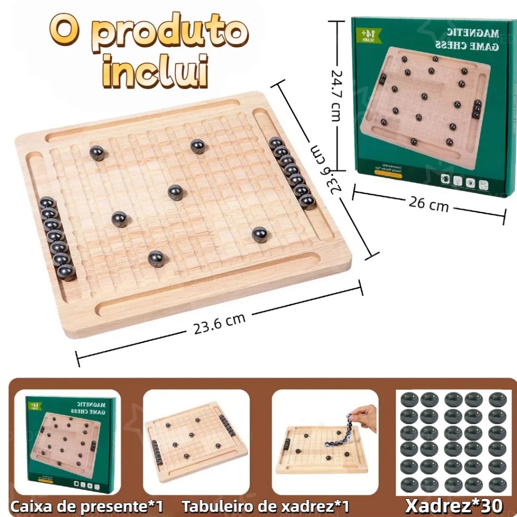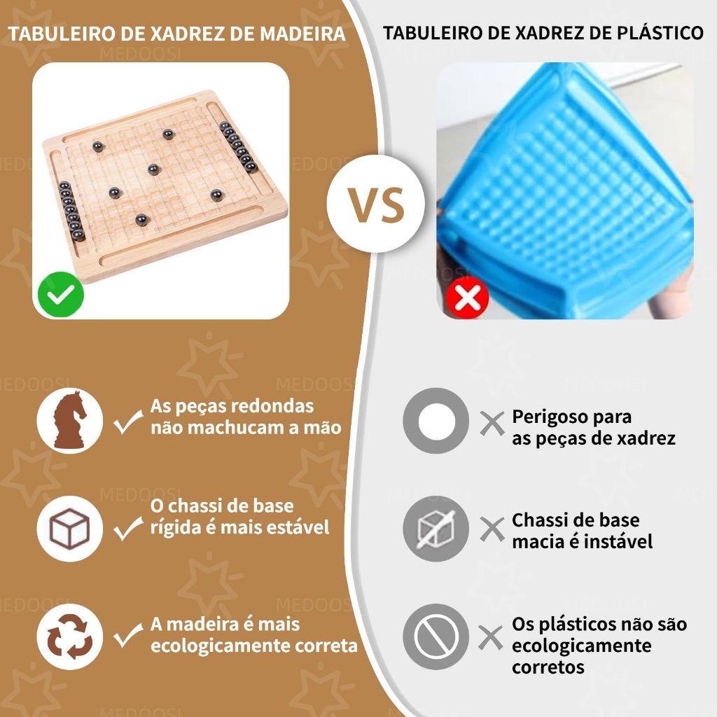 MEDOOSI Xadrez Magnético de Madeira Portátil -Jogo de Tabuleiro Infantil com Peças Brinquedo Educativo para Interação