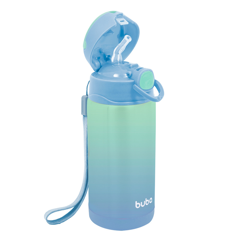 Garrafa Térmica Infantil Degradê Inox Parede Dupla Com Canudo Original Buba