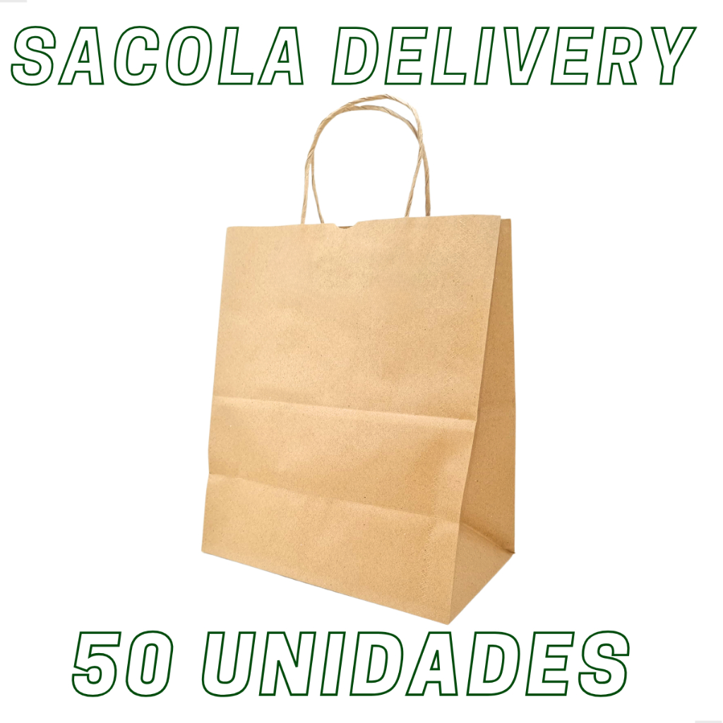 Sacola Papel Kraft Delivery Com Alça 25x15x29 Cm (50 Un)