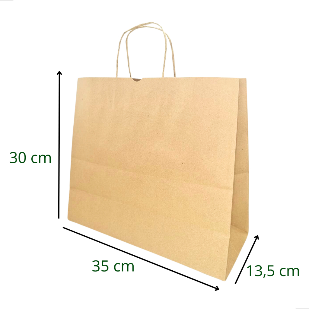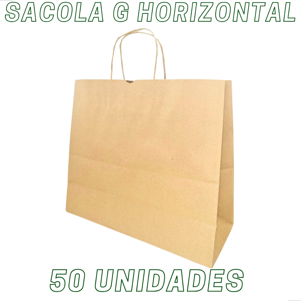 Sacola Papel Kraft Pardo G Horizontal 35x30x13,5 Cm (50 Un)