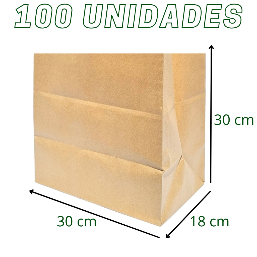 Saco Kraft Papel Delivery G 30x30x18 cm (100 Unidades)