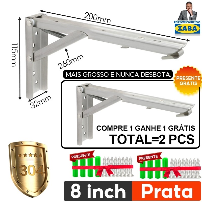 Kit Suportes Mão Francesa Retrátil Dobrável Cantoneiras Mesa Balcão 20cm 25cm 30cm 35cm