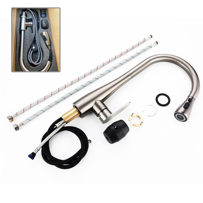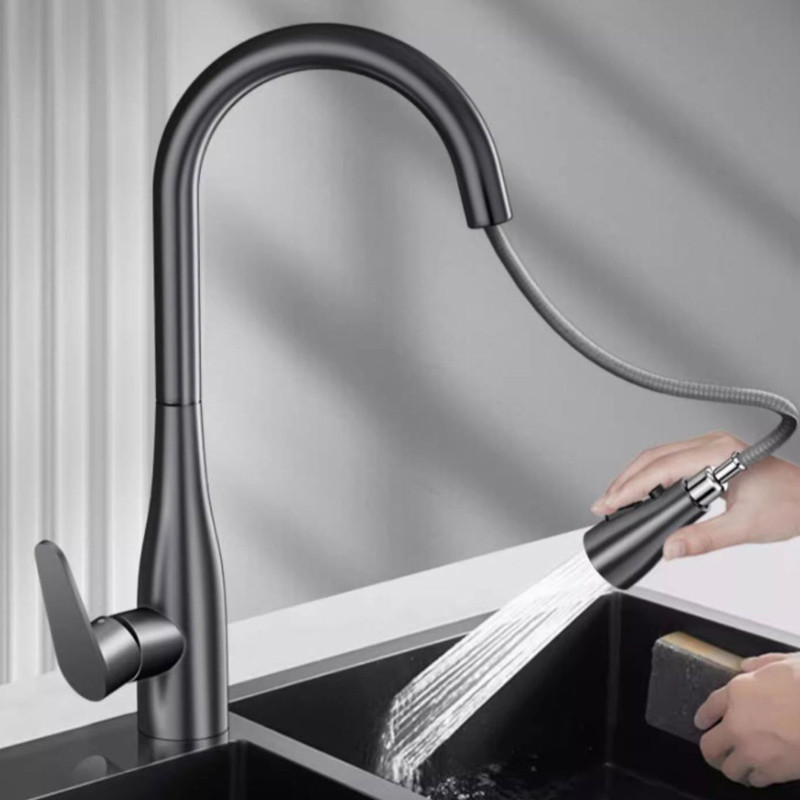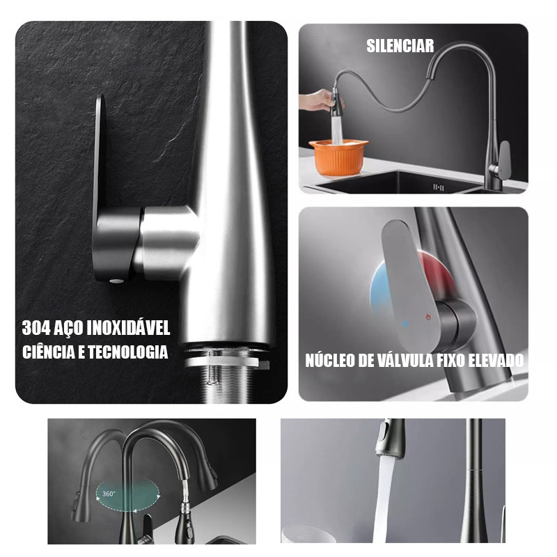 Retrátil Torneira De Cozinha 2 Em 1 Giratória 360°, De Aço Inoxidável 304 Preto Prata Banheiro, Cozinha